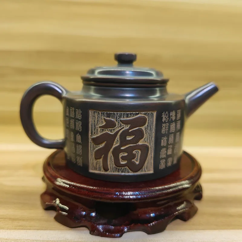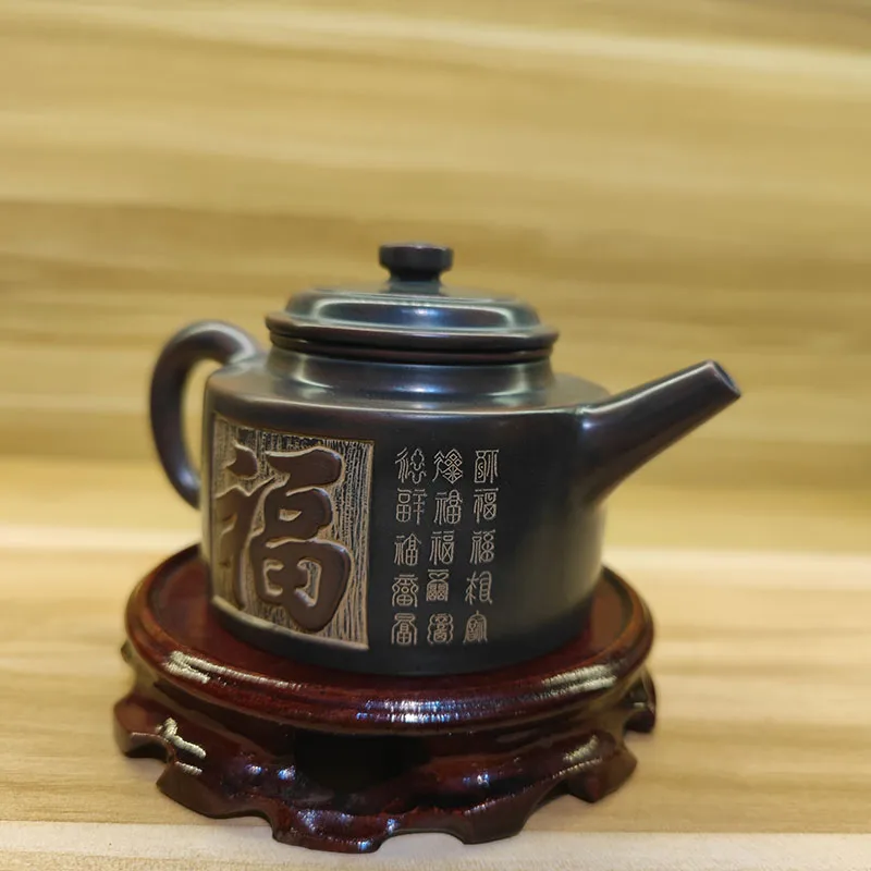 Indulge in the delightful experience of brewing tea with our Artisan 200ml Qinzhou Nixing Purple Clay Teapot and invite good luck and happiness into your life with the Baifu, a symbol of a hundred different blessings.