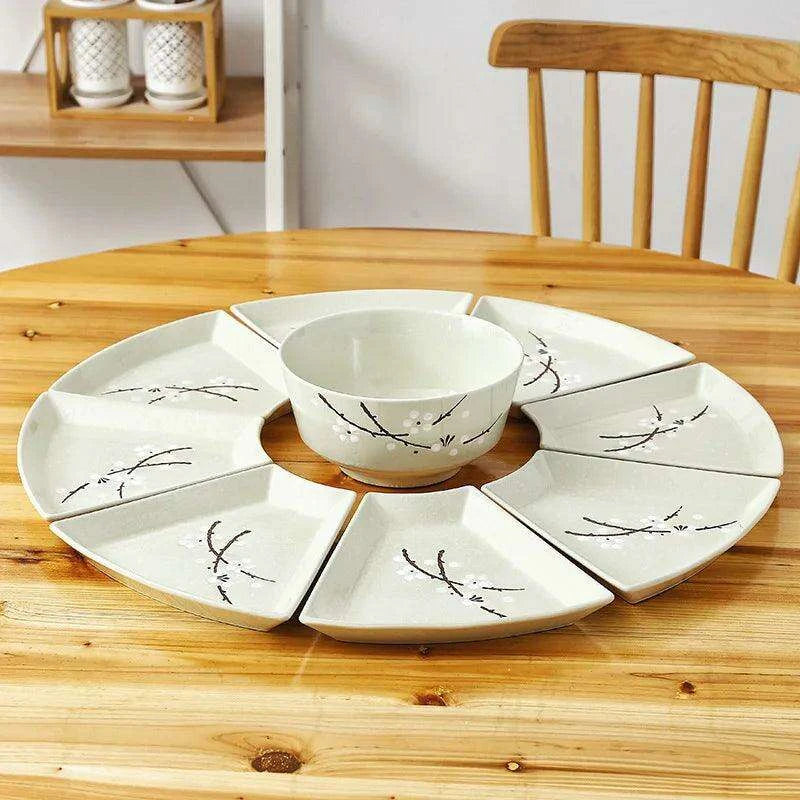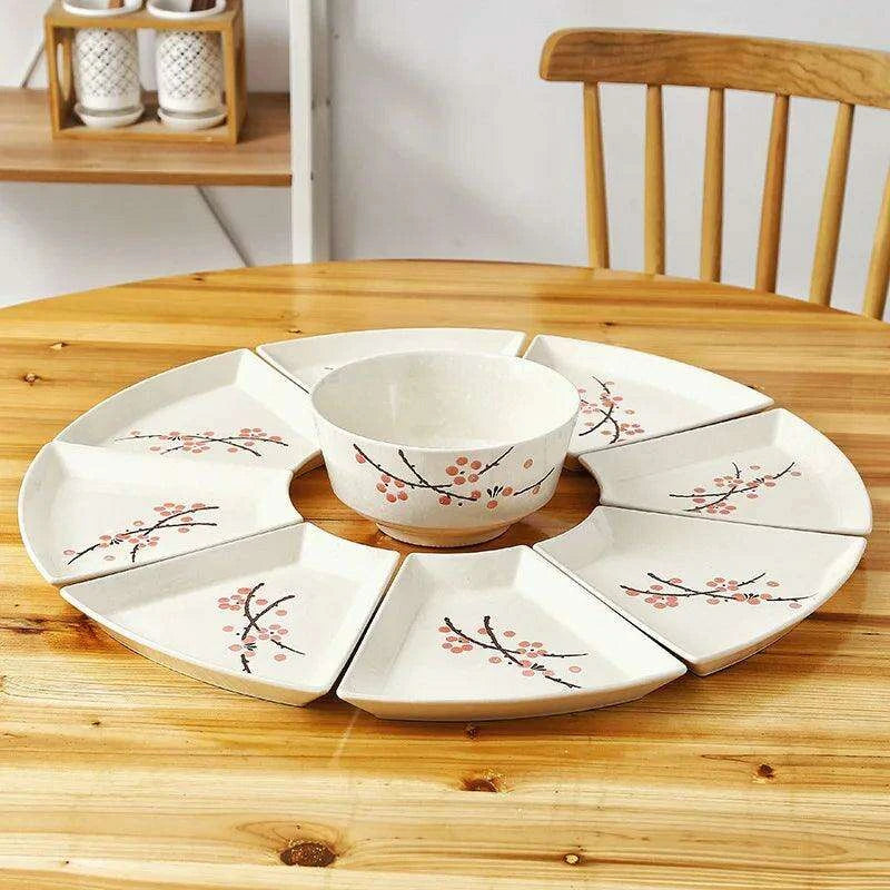 Artisan Hand-Painted Japanese Ceramic Dining Set with Elegant Platter and Bowl