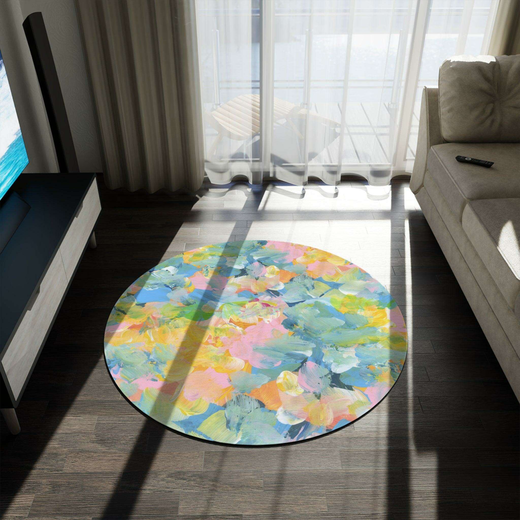 The Vibrant Artistic Round Chenille Rug is an essential accent piece for your home. Its lively designs bring a vibrant energy to any space, while the durable polyester chenille, coated backing, and meticulous edge hemming ensure long-lasting beauty and functionality. Elevate your home with this exquisite creation from Maison d'Elite, designed by renowned artist Rud. Liliia, and experience the perfect blend of art and practicality.