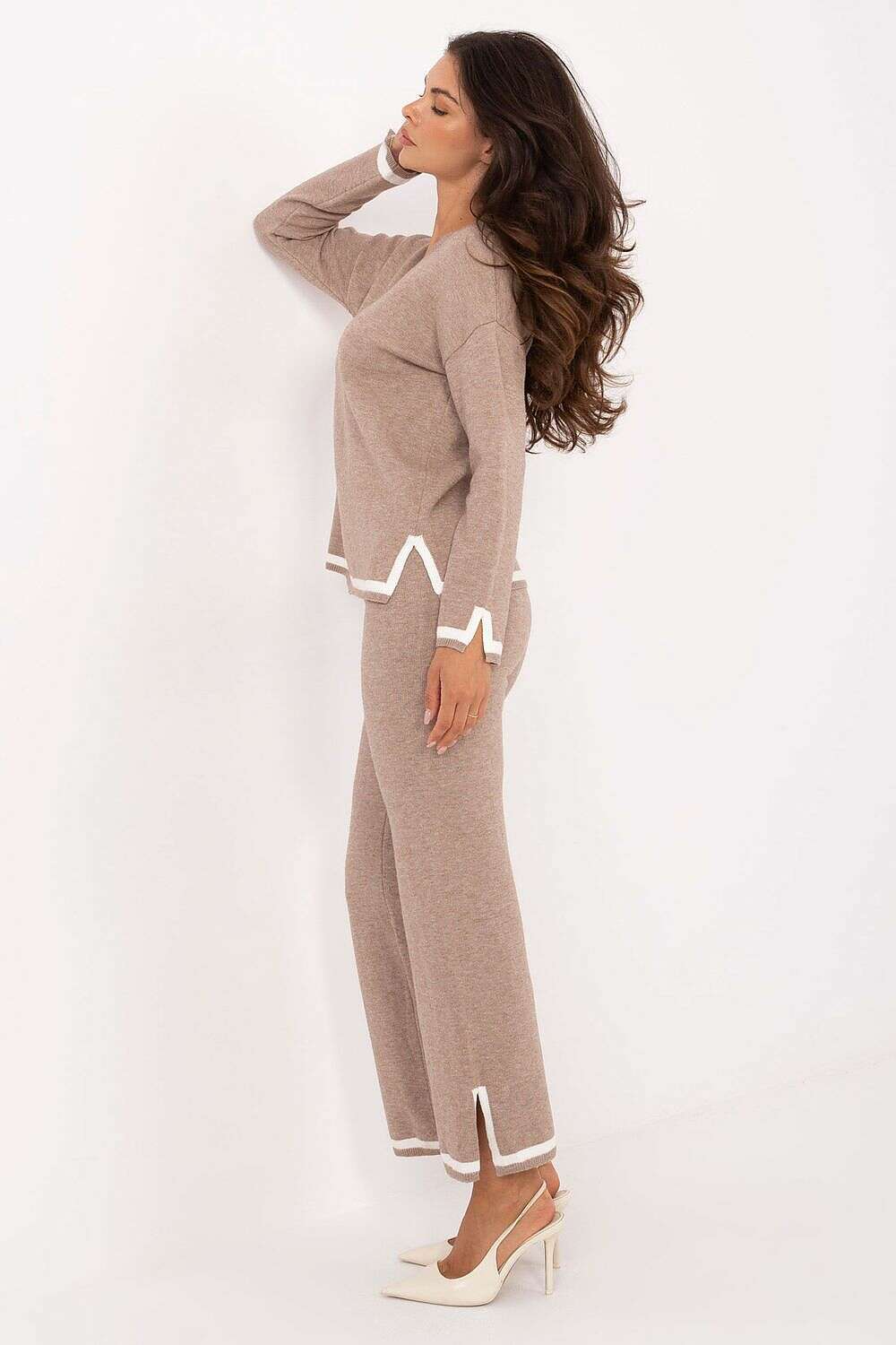 Discover Set model 216698, a casual women's sweater set crafted for everyday comfort and modern style. This coordinated duo includes a soft knit sweater and matching pants, designed to simplify your wardrobe with one easy, put-together look.