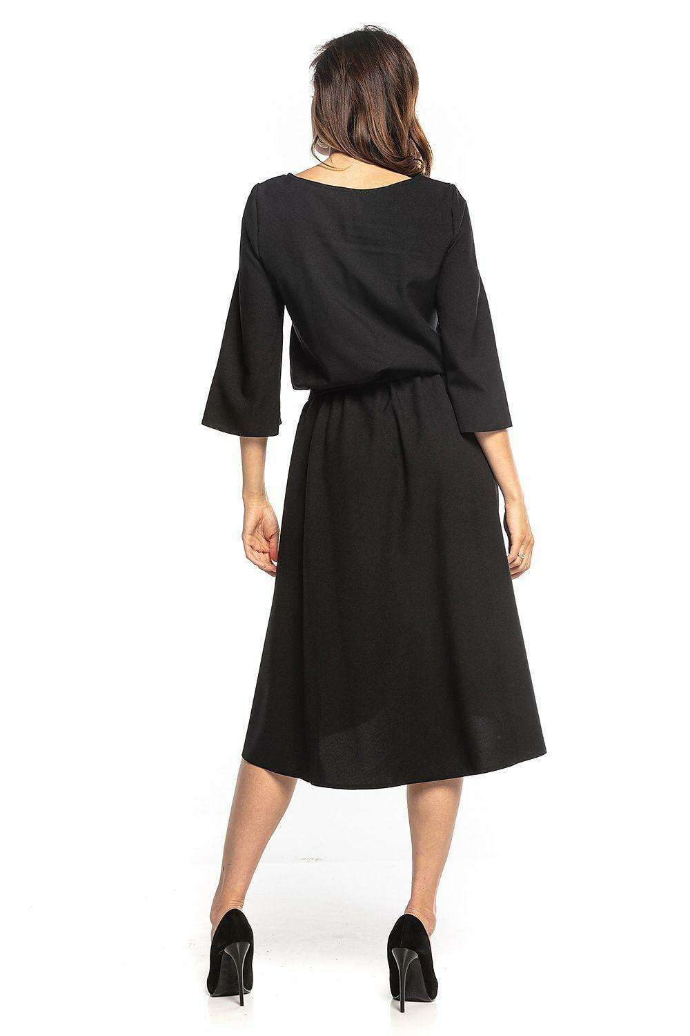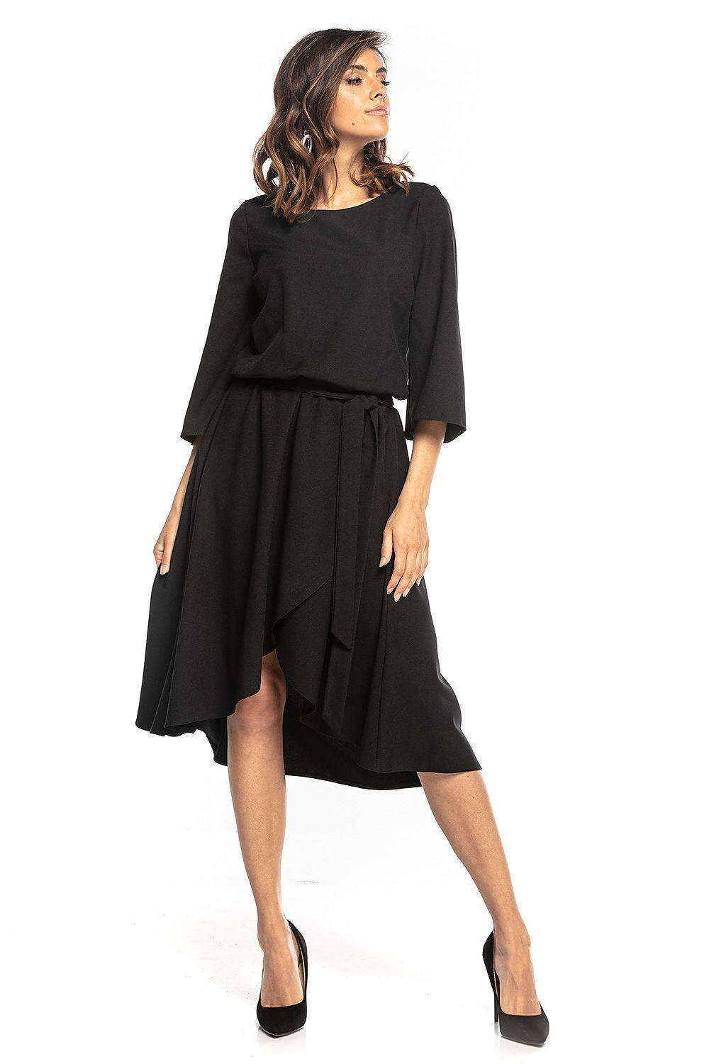 Chic Belted Midi Dress with Asymmetrical Hem - Tessita Daywear