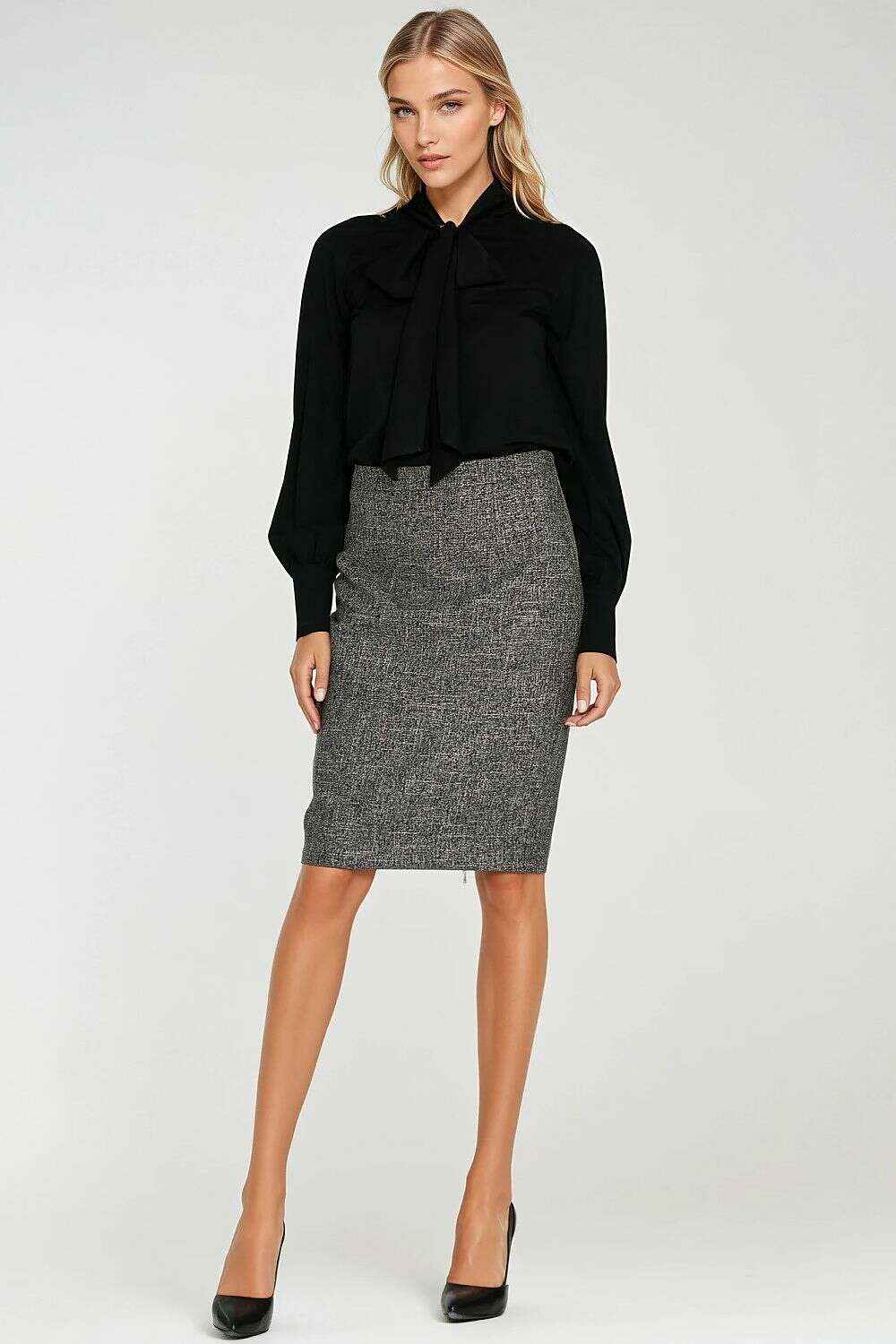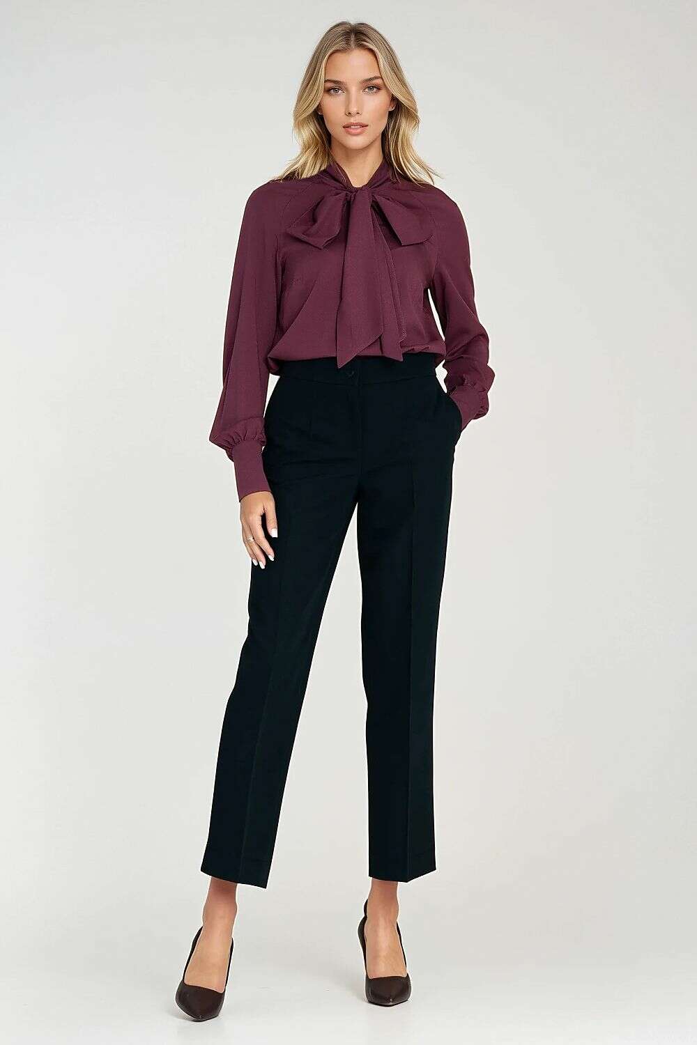 - Scarf-Neck Detail: Wide neck scarf offers multiple styling options—bow, loose, or wrapped