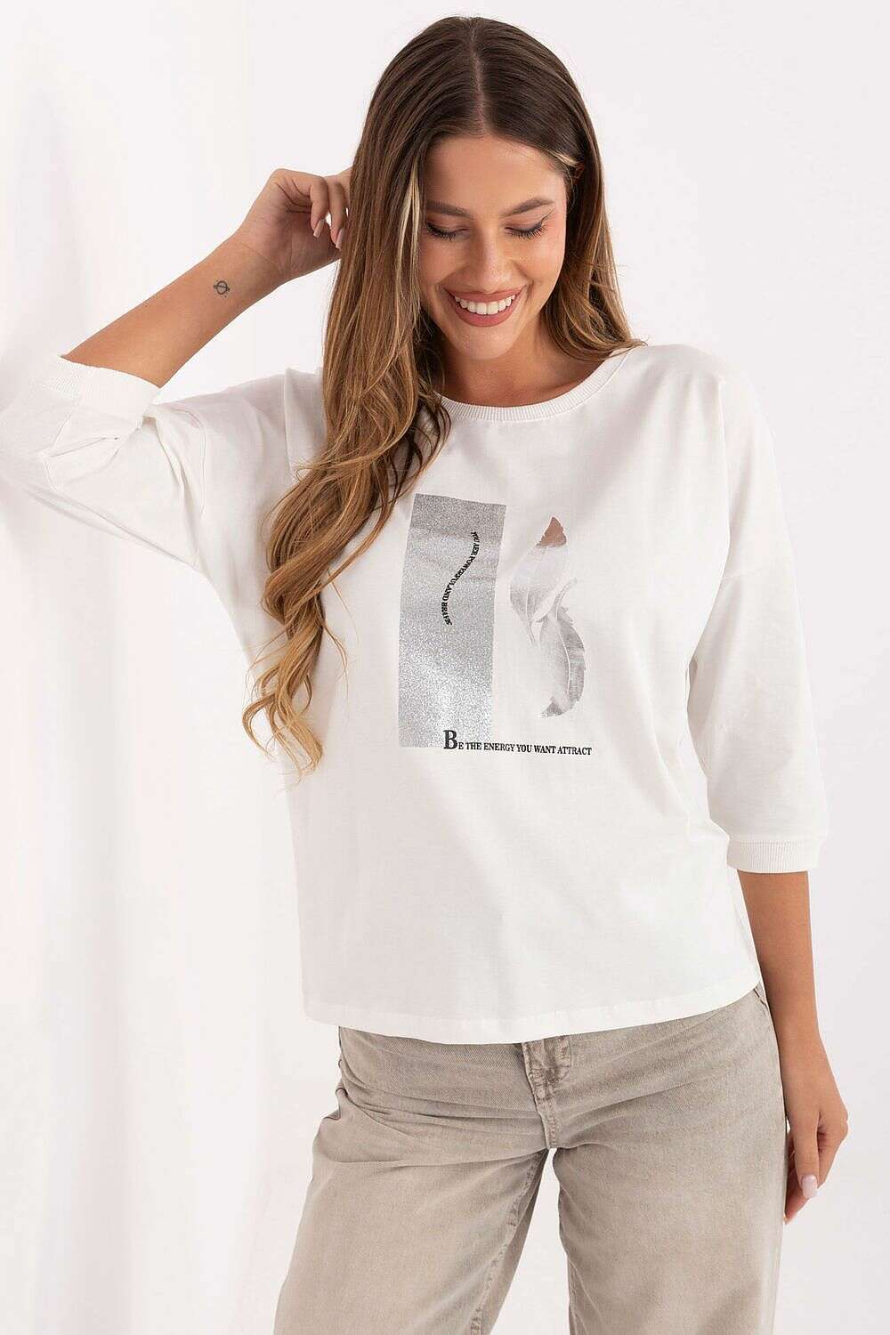 Details that stand out include 3/4 sleeves and a classic round neckline, creating a timeless silhouette that pairs beautifully with your favorite trousers or skirts. The standard length ensures versatile styling, whether tucked in or worn loose.