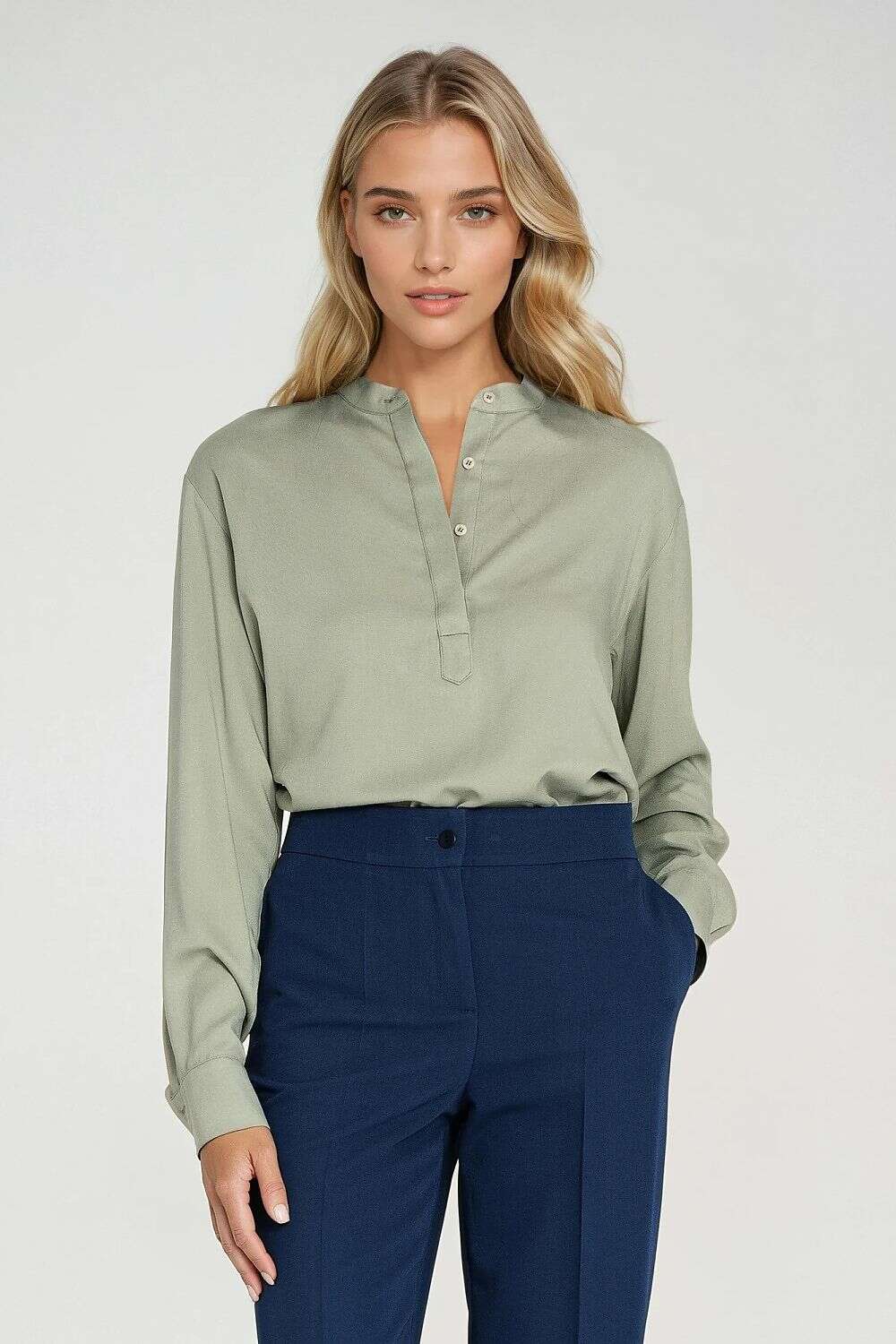 Viscose Oversized Women's Blouse Stand Up Polo Neck combines freedom with elegance. Made from lightweight, soft-to-the-touch viscose, it delivers comfort all day long.