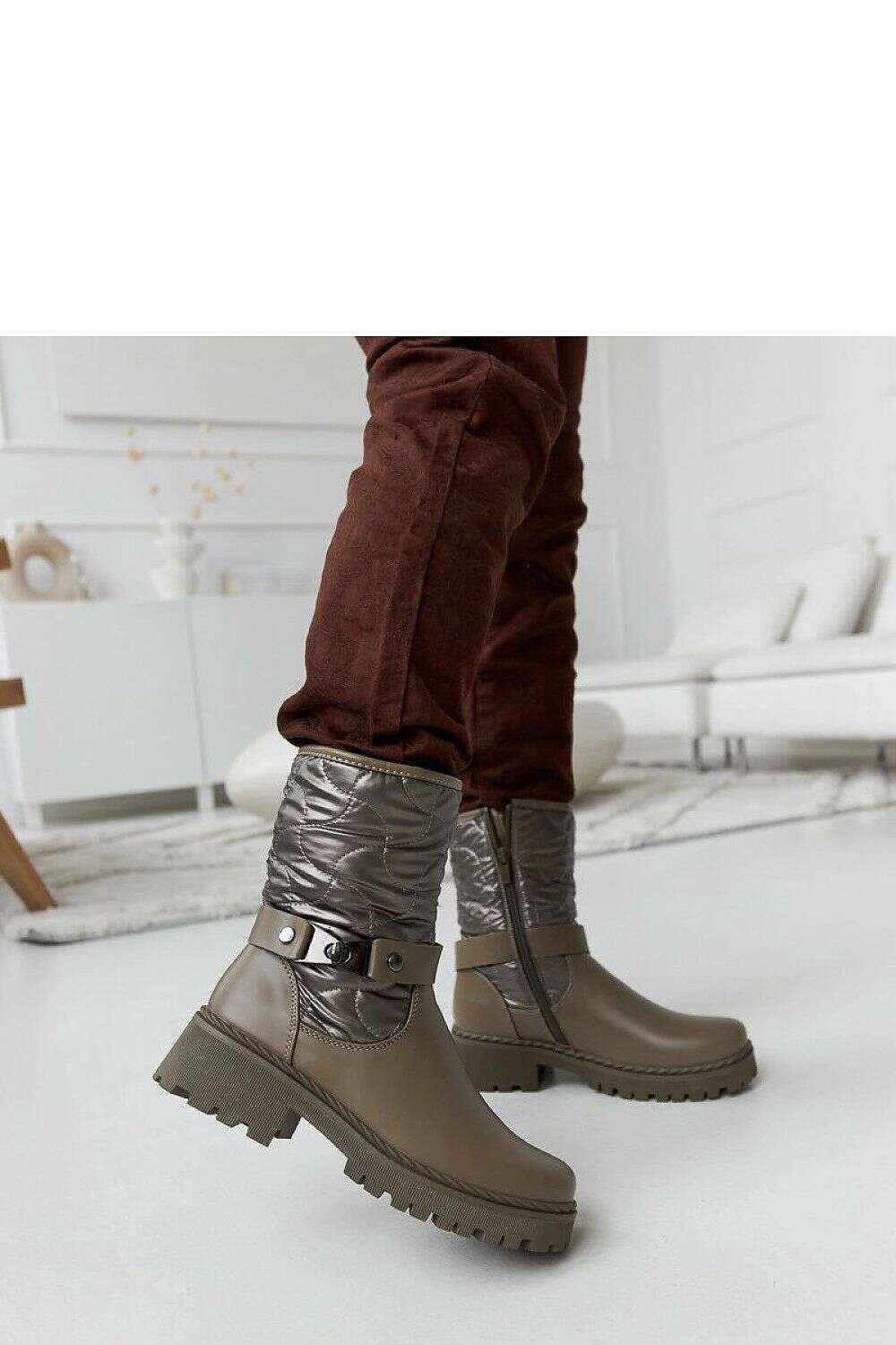 Green insulated Lido ankle boots with a decorative strap are the perfect footwear for cold days. Thanks to the insulated construction, they provide warmth and comfort even in the lowest temperatures. Their universal ankle height makes them suitable for both everyday and more elegant stylizations. The modern design combined with the decorative strap gives the boots character and originality. The flat heel ensures comfort for long wear, and the side zipper makes it easy to put on and take off the shoes. Made of high-quality rubber, the boots are durable and moisture-resistant, making them ideal even in rainy weather. These fashionable and practical ankle boots will allow you to enjoy comfort and a stylish look throughout the winter.