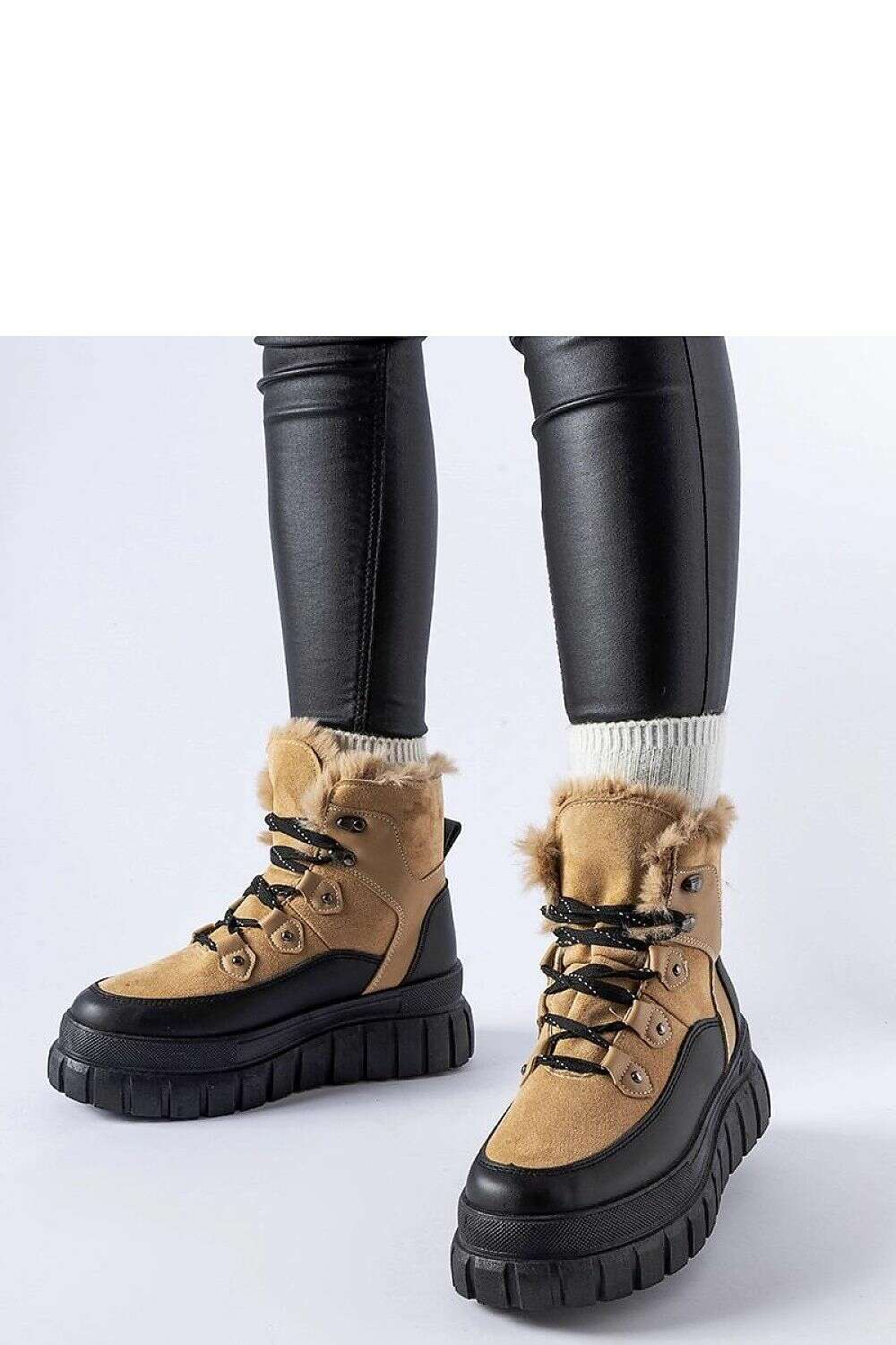 Beige Cervantes ankle boots with a massive sole are the perfect footwear for the upcoming autumn and winter. Their classic design with a round toe makes them suitable for both casual and elegant stylizations. Made of high-quality rubber, they are resistant to difficult weather conditions and provide excellent grip. Thanks to the lacing, they can be adjusted to individual needs and provide stability while walking. Additionally, the insulated interior makes them extremely warm and comfortable even on the coldest days. The boots have an outer layer made of eco-leather zam, a height of 19 cm, and a black sole. The classic beige color makes them a perfect addition to the wardrobe of any modern woman who values fashion, comfort, and functionality. Perfect for autumn and winter days!