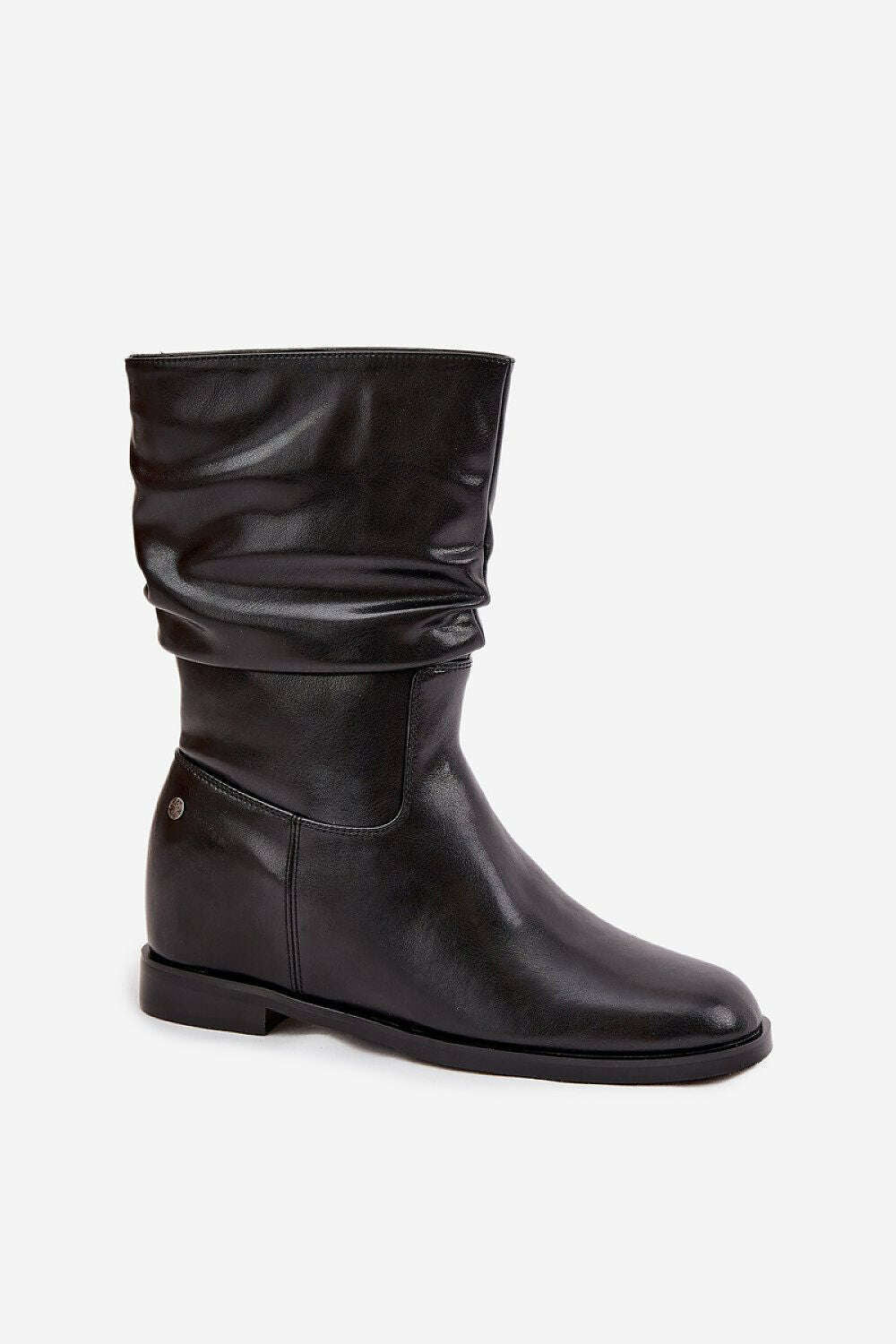 Designed for all-day comfort, they sit on a low flat heel of 2.5 cm, providing steady support without sacrificing style. The insulated interior keeps feet warm on chilly days, making these boots an ideal choice for fall and winter wear. The gathered upper adds a contemporary fashion-forward detail, ensuring you look chic whether you’re pairing them with jeans, leggings, dresses, or skirts.