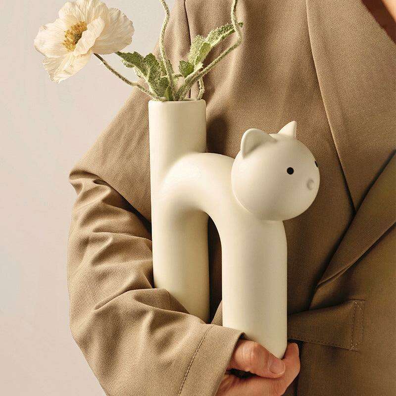 Elegant Handcrafted Ceramic Cat Vase - A Touch of Luxury for Your Home