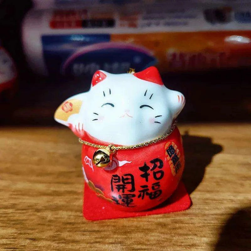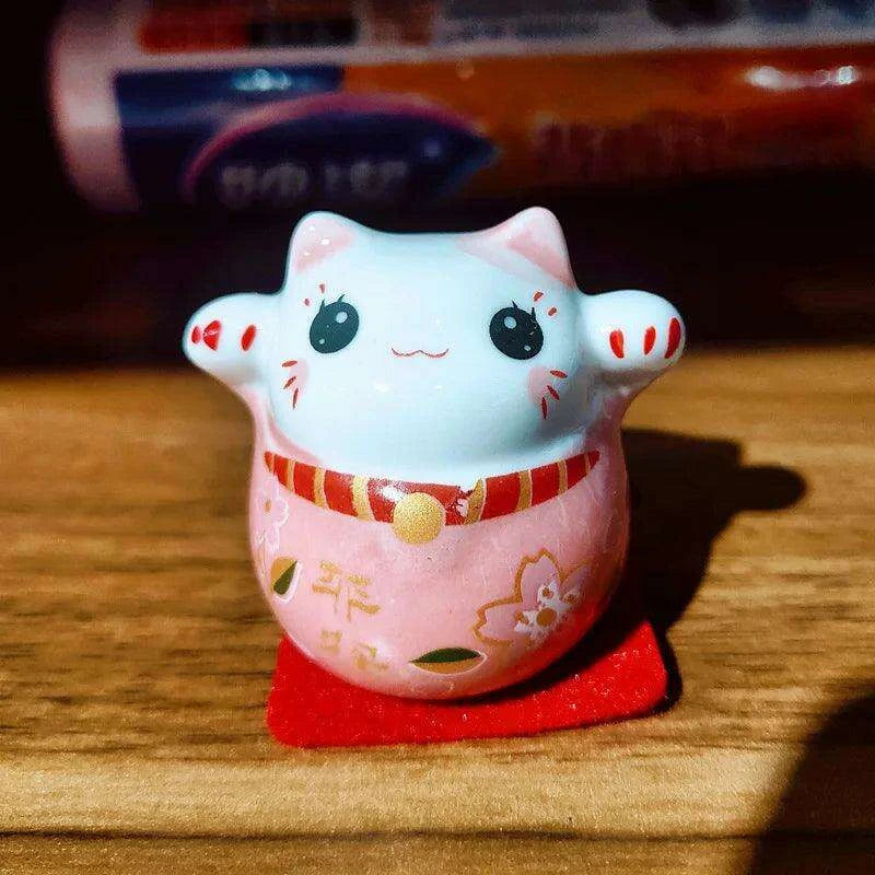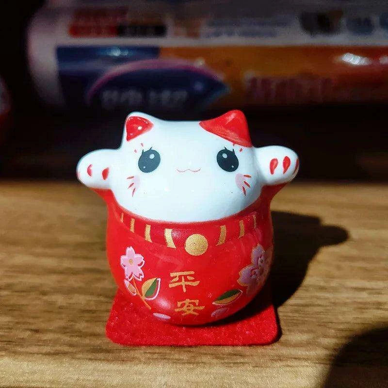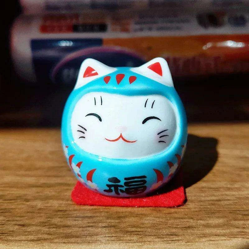 Bring Home Good Fortune with the Whimsical Japanese Ceramic Lucky Cat Daruma Figurine