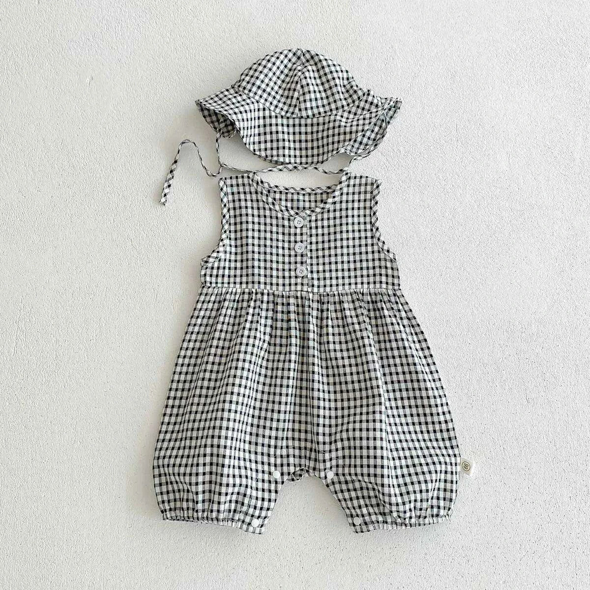 Summer Baby Girls Clothing Newborns Plaid Rompers