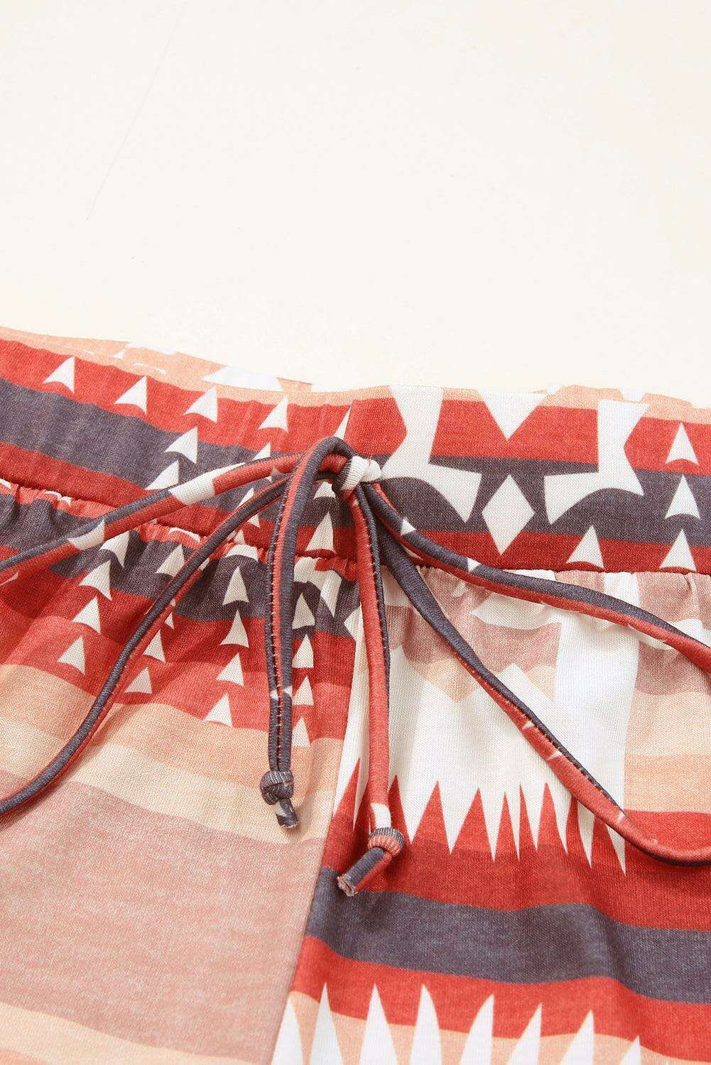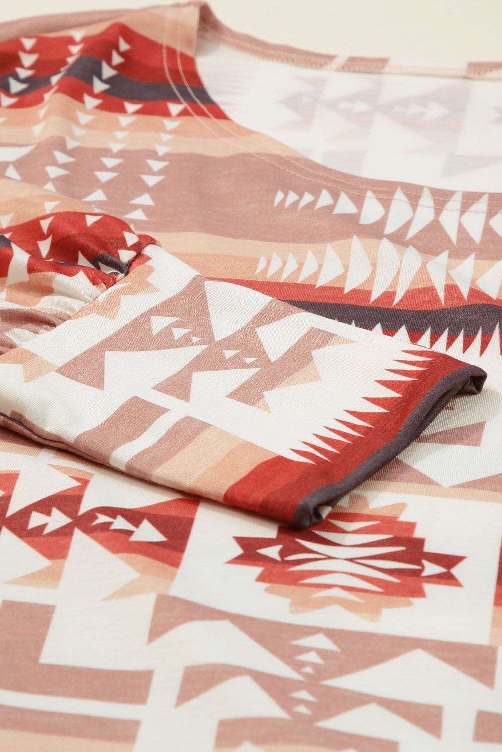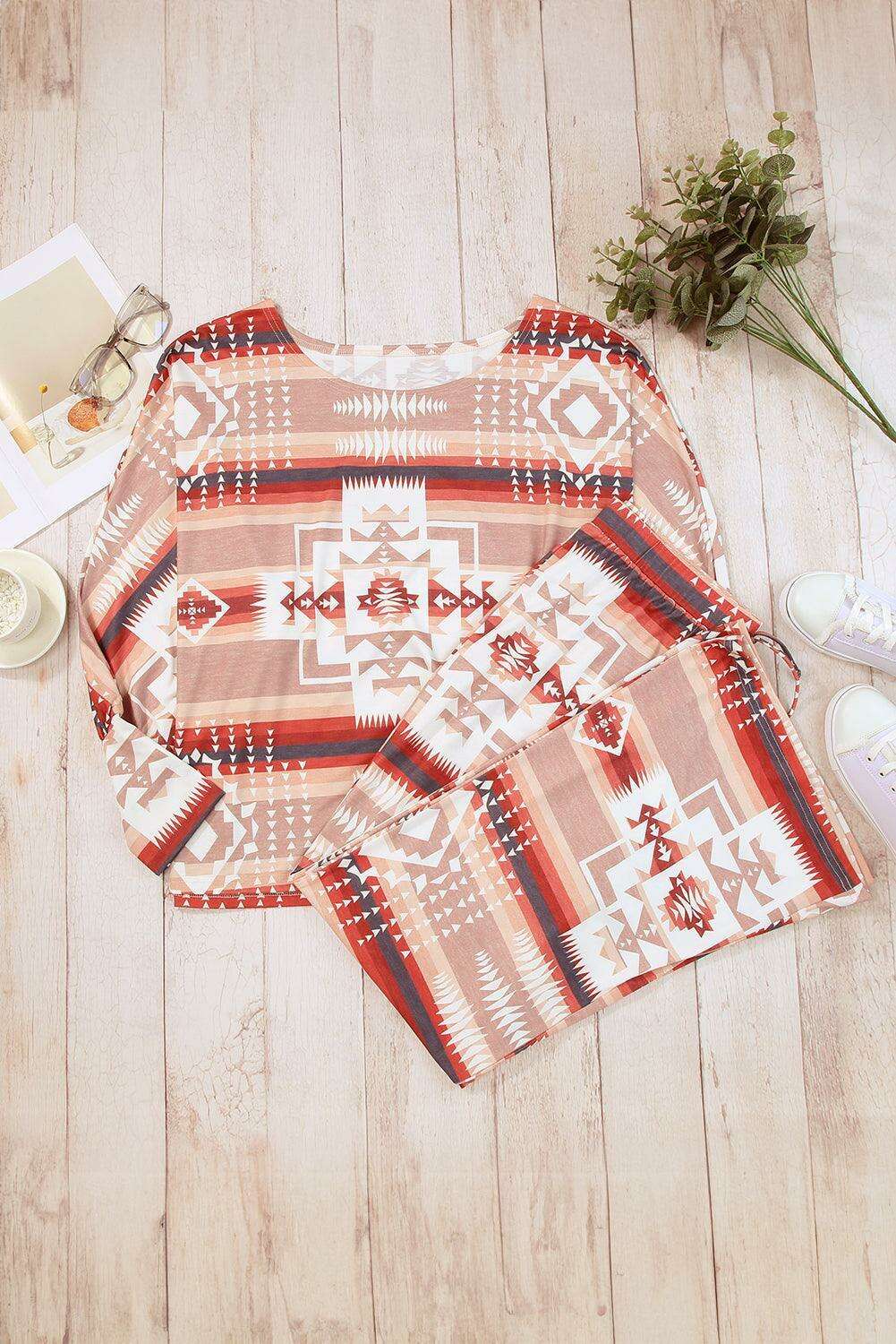 Vibrant Aztec-Patterned Lounge Set with Stylish Puff Sleeves & Customizable Drawstring