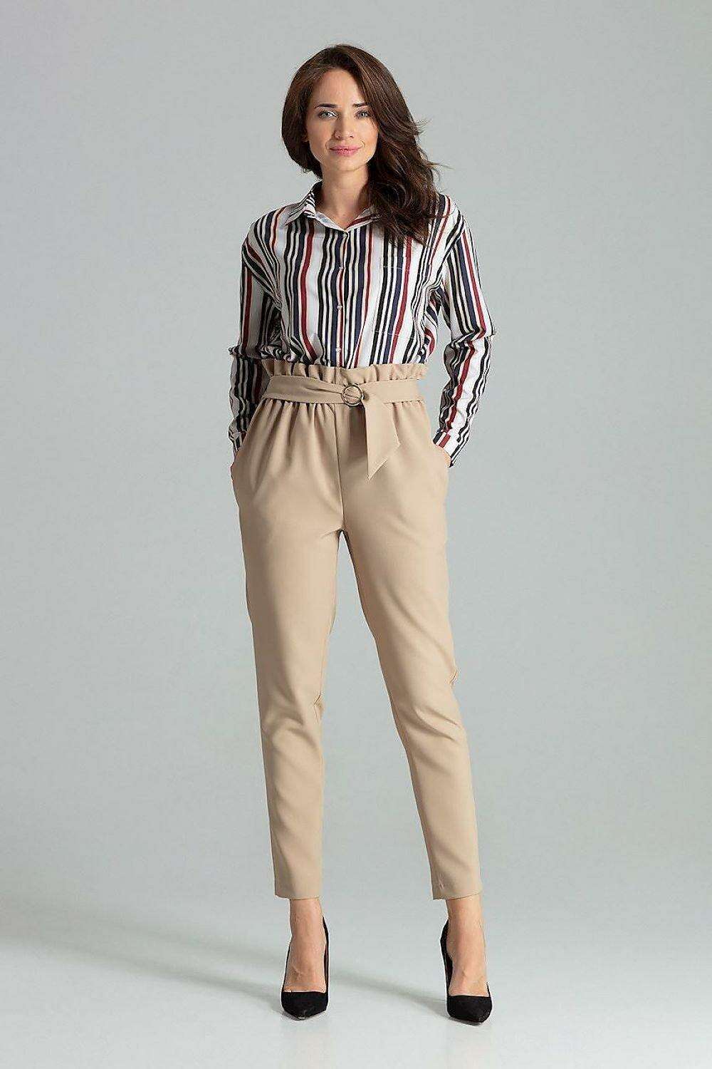 Chic Beige Trousers with Glamorous Golden Buckle - Comfortable Style