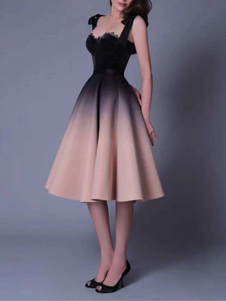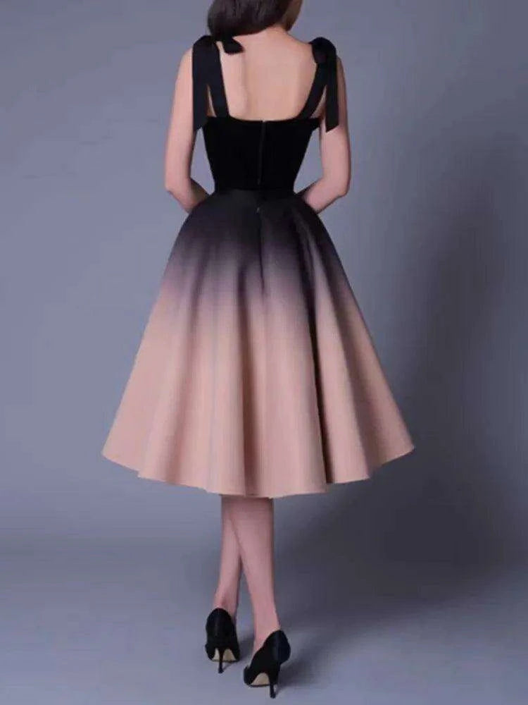 Chic Bowtie Halter Top and Pleated Ombre Skirt Summer Party Dress