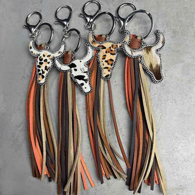 Chic Bull-Shaped Cowhide Keychain for Fashionable Statement