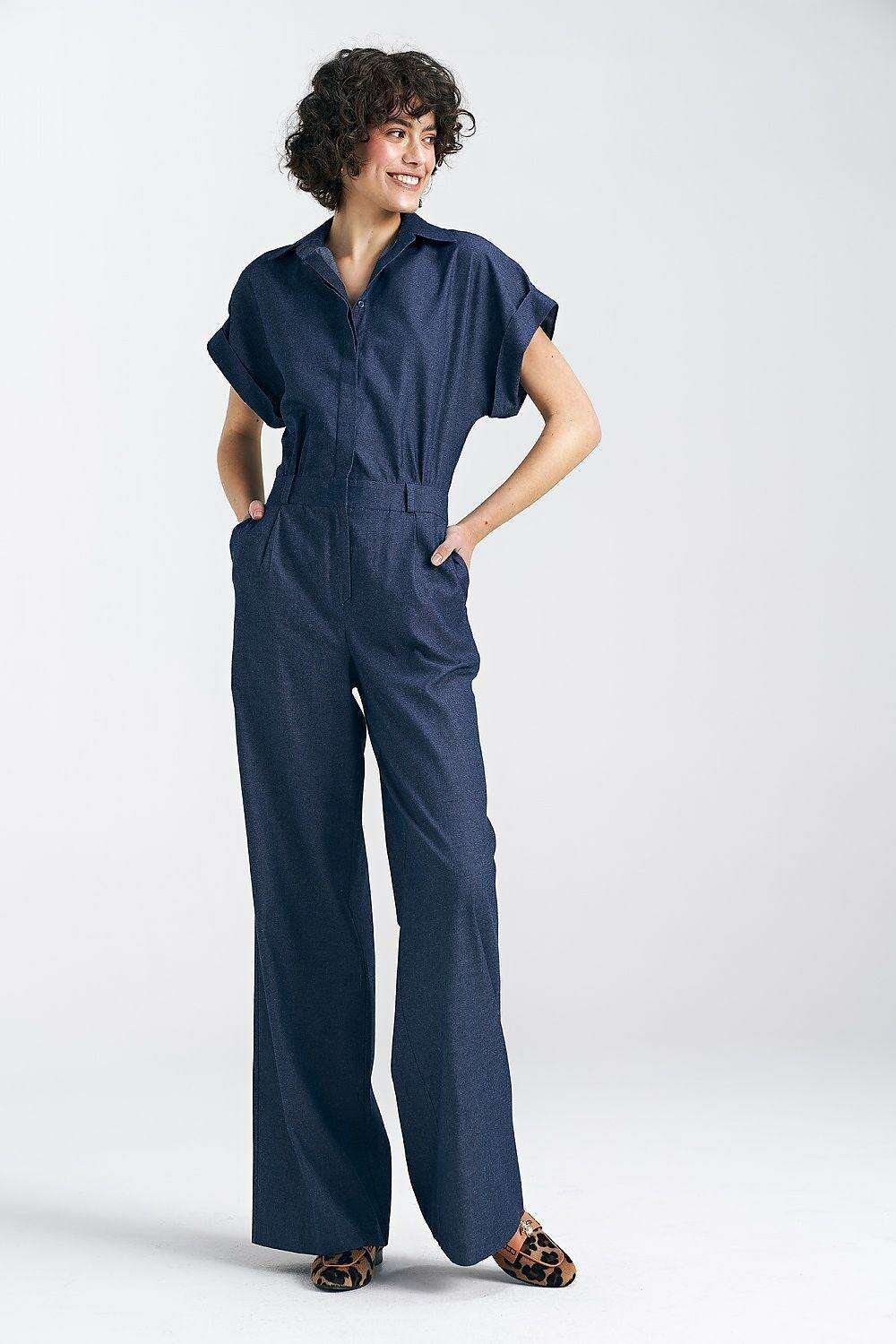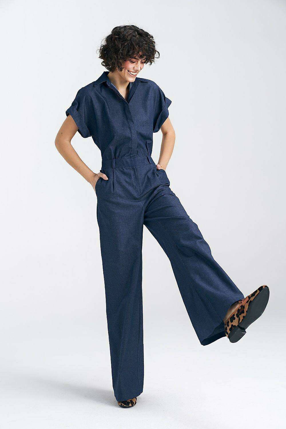 Key features include 100% cotton denim for a breathable, soft feel and a versatile cut that drapes beautifully from day to evening. The jumpsuit is designed to move with you, offering a flattering fit that pairs effortlessly with heels, flats, or sneakers.