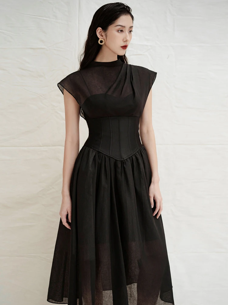 - Elegant Design: The chic O-neck and tasteful pleated detailing create a timeless silhouette that complements and flatters every figure.