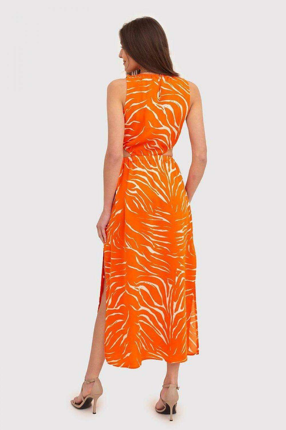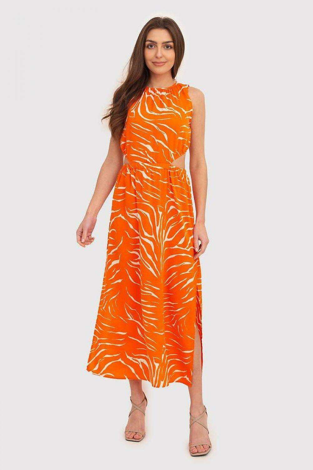 Introducing the Versatile Orange Print Midi Dress by Ax Paris - a chic and stylish staple designed for the modern woman who appreciates both flair and comfort. This dress is your go-to garment that seamlessly transitions from daytime outings to evening events, making it an essential addition to your wardrobe.