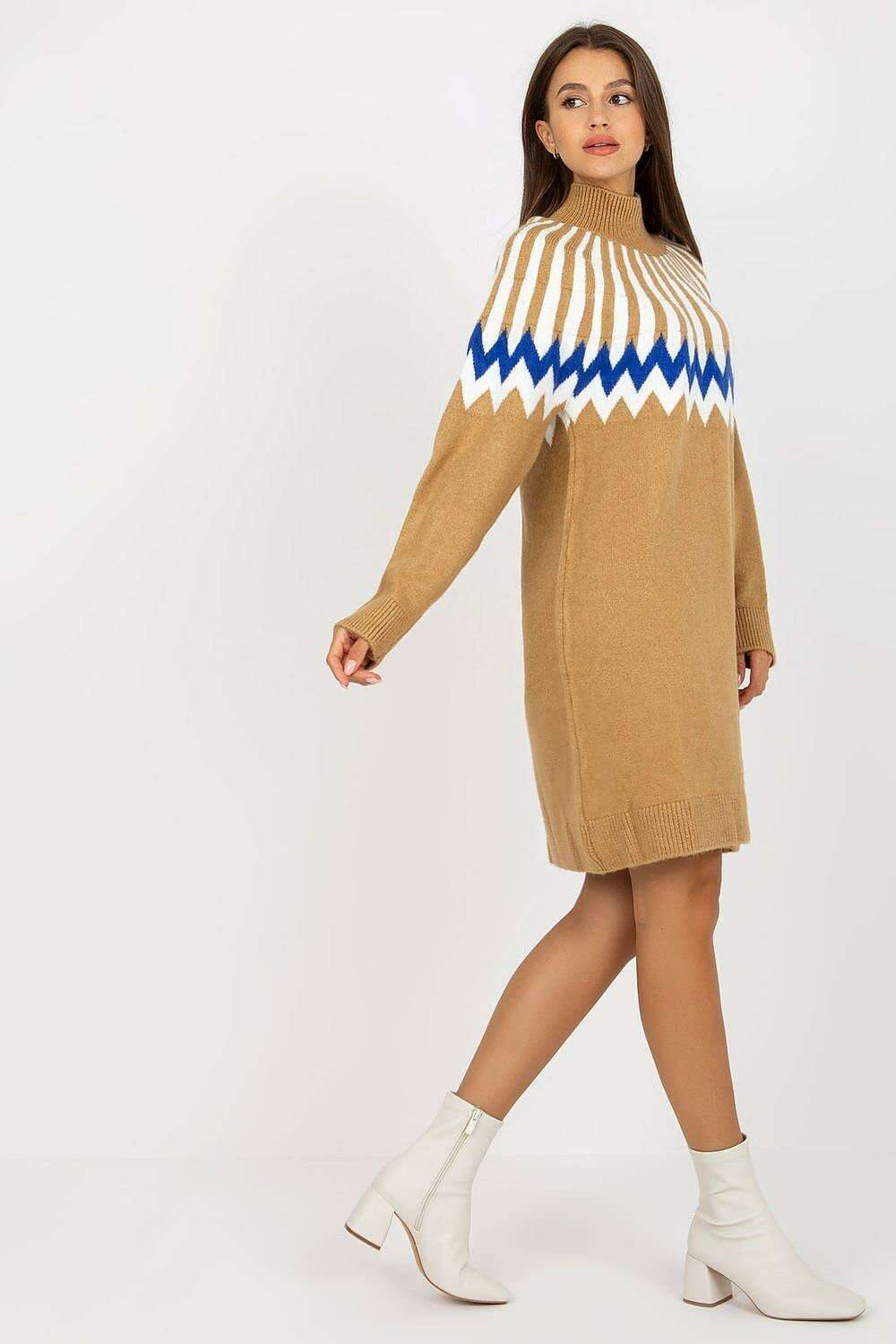 Chic Parisian Geometric Knit Turtleneck Daydress EU Made
