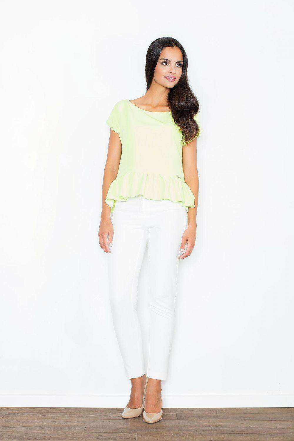 Chic Short Sleeve Frilled Blouse for Women in Figl Design with Exquisite Details