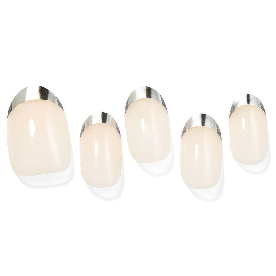 Sophisticated Silver French Gel Nail Set - 30 Nails with Prep Pad & Tools