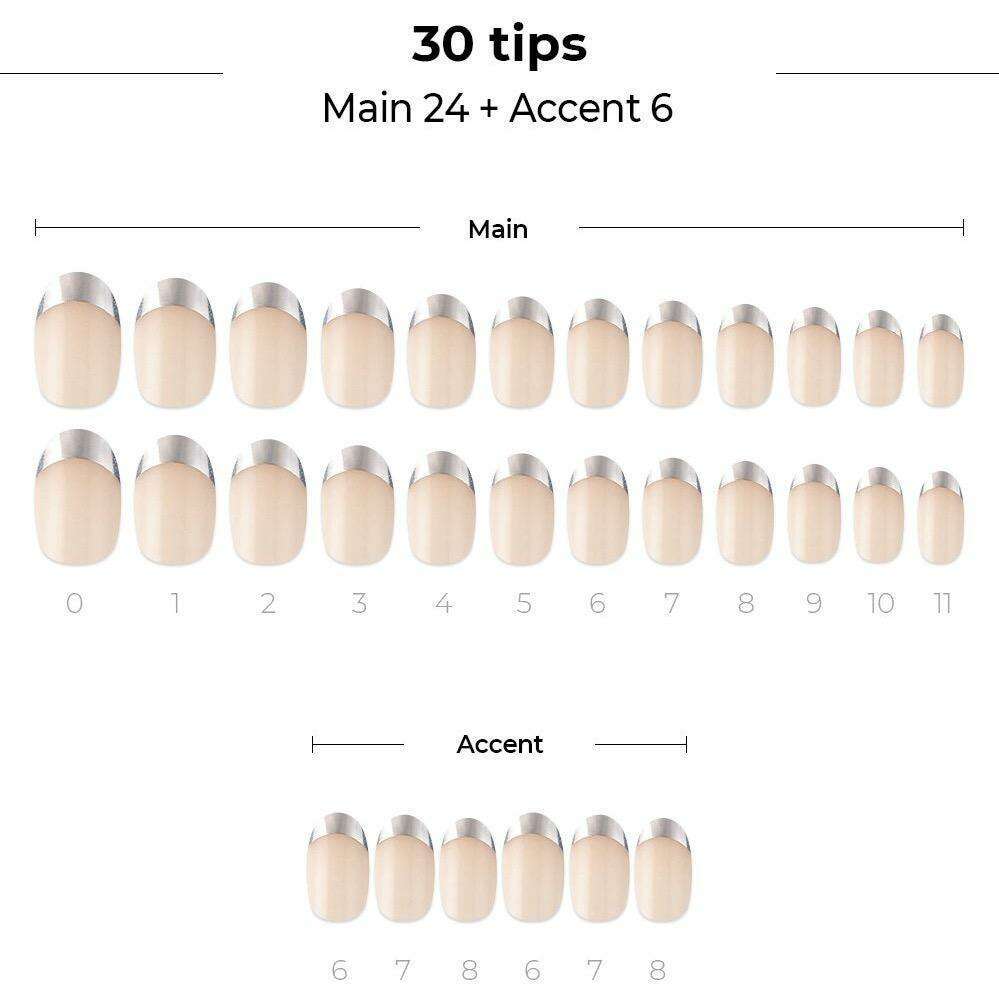 Chic Silver French Gel Nail Kit - 30 Nails with Prep Pad & Tools