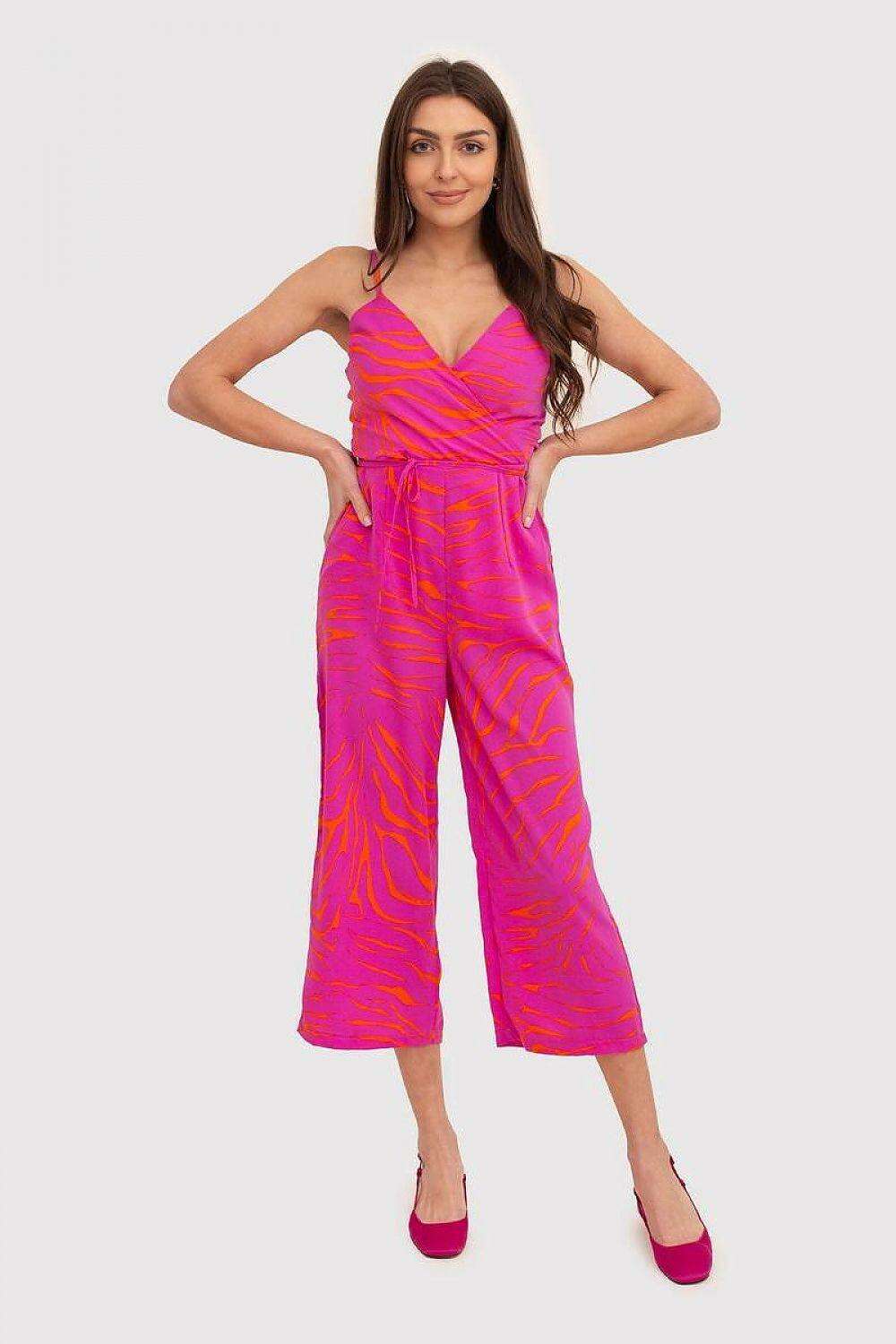 Introducing the Vibrant Pink and Orange Printed Strapless Jumpsuit with Stylish Envelope Top - a stunning and fashionable piece designed to elevate your wardrobe and ensure you stand out in any crowd!