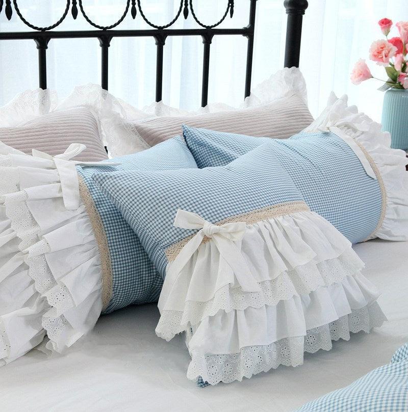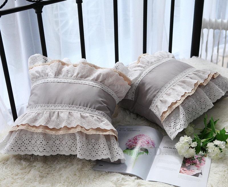 European Striped Ruffle Lace Pillowcase for Elegant Home Decor