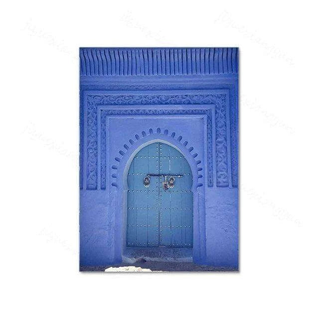 • Beautiful Coastal Scene: Delve into the serene beauty of a blue Moroccan beach adorned with delicate palm leaves.
