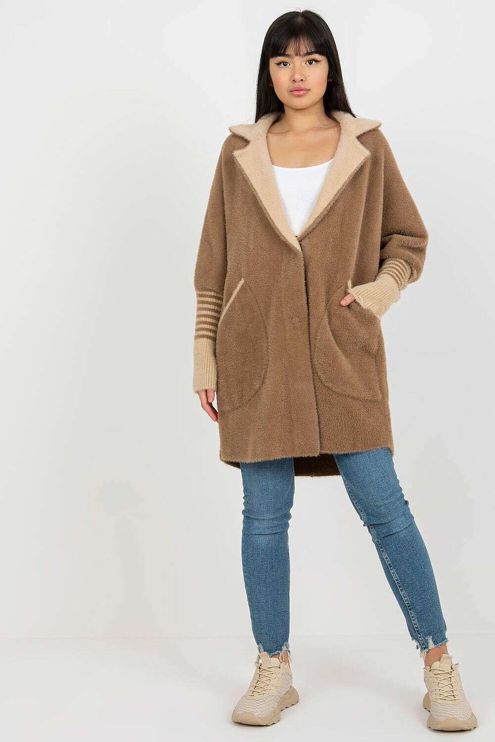 Women's long sleeve coat with press stud fastening. Coat with large slip pockets. Angora 15.3 % Polyester 23.5 % Viscose... Leer más... Leer más...