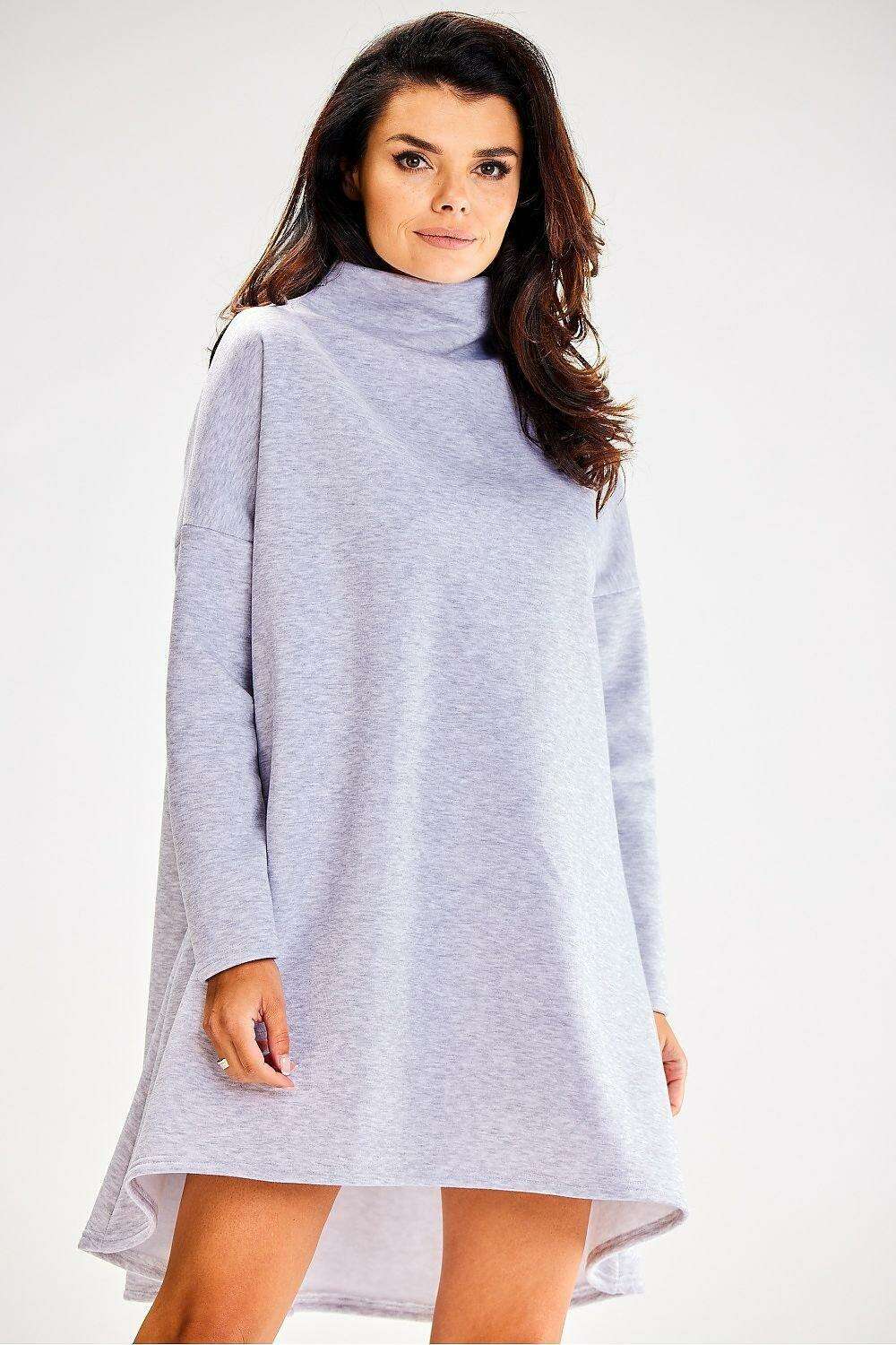 Cozy Autumn Trapeze Turtleneck Dress with Stretchy Comfort