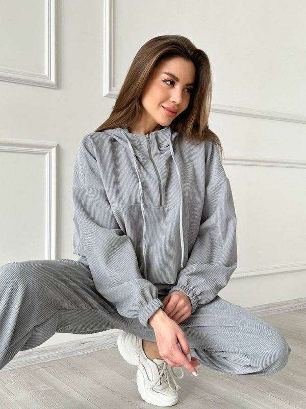 Cozy Hooded Half-Zip Tracksuit Set for Women
