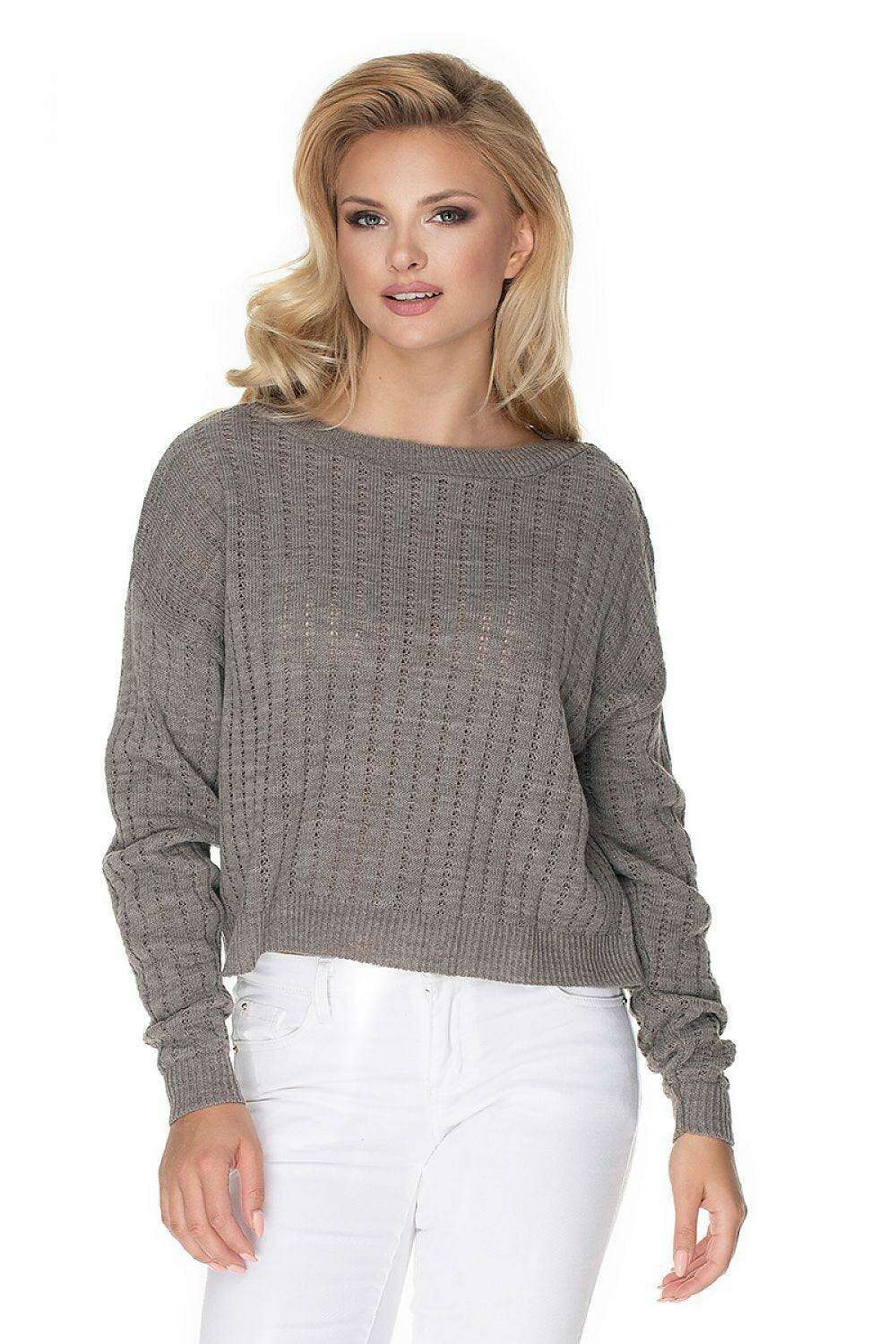 Cozy Knit Boat Neck Sweater with Peekaboo Stitch