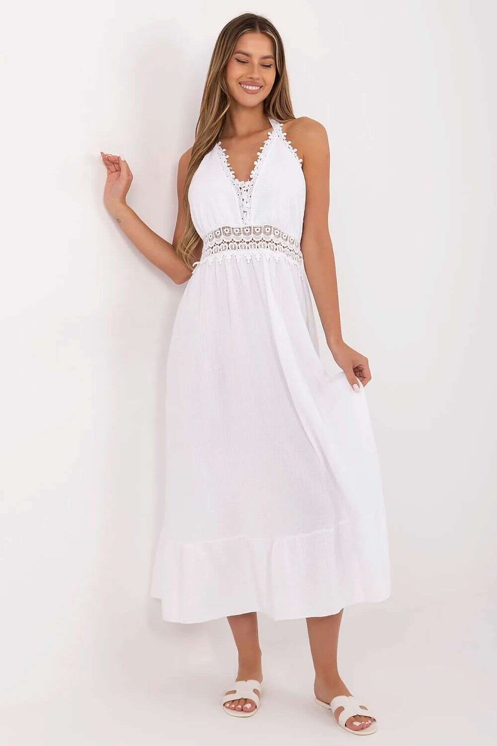 Daydress 213315 White Cotton Midi Dress Boho Style Flared