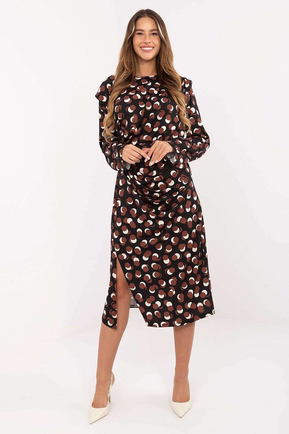 Daydress 219031 is an elegant midi dress with a geometric pattern that transitions from office to evening with ease.