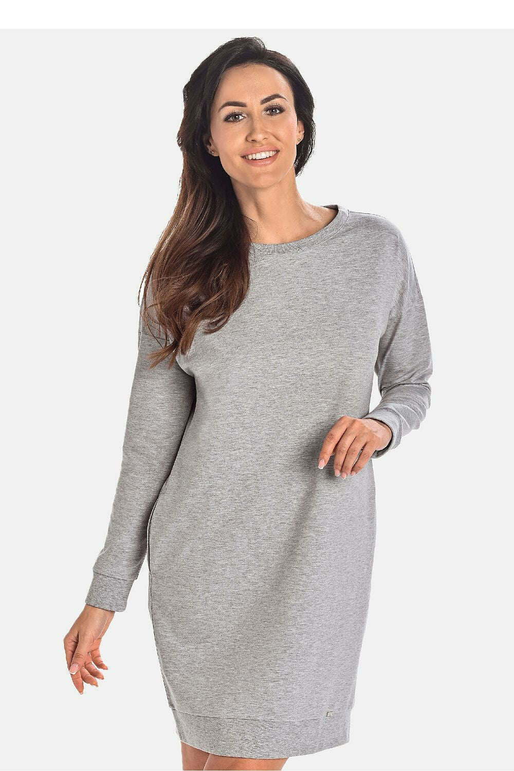 Daydress Model 220163 is a women's gray cotton knee-length dress designed for comfort and effortless everyday style. This classic-cut dress blends soft, breathable fabric with practical details that make it stand out in a crowded market.