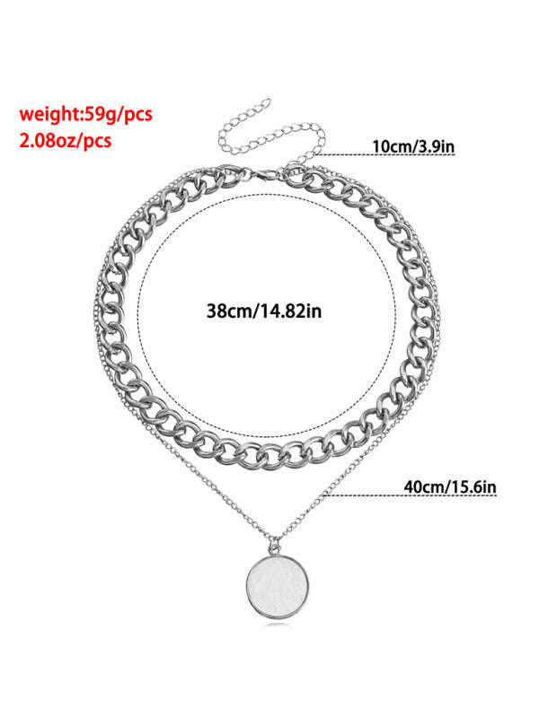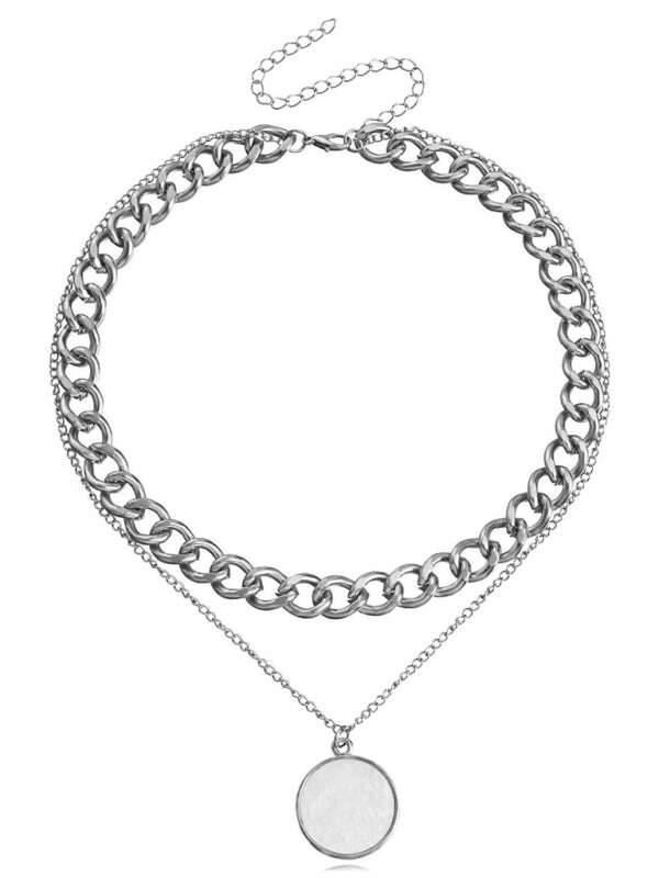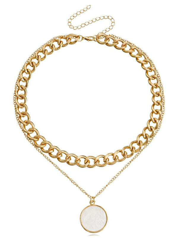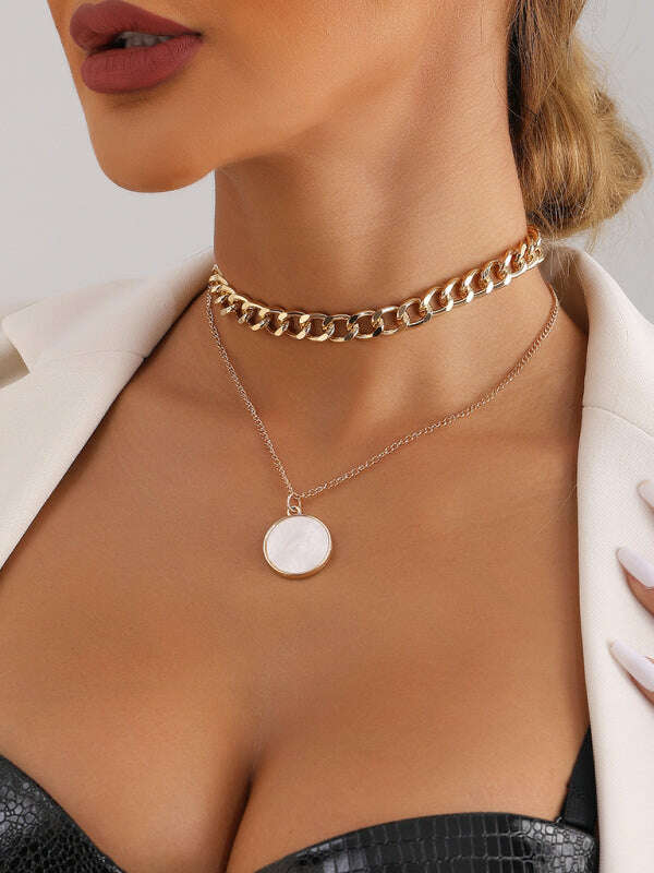 Double-layer geometric round white mother-of-pearl pendant necklace necklace metal thick aluminum chain necklace
