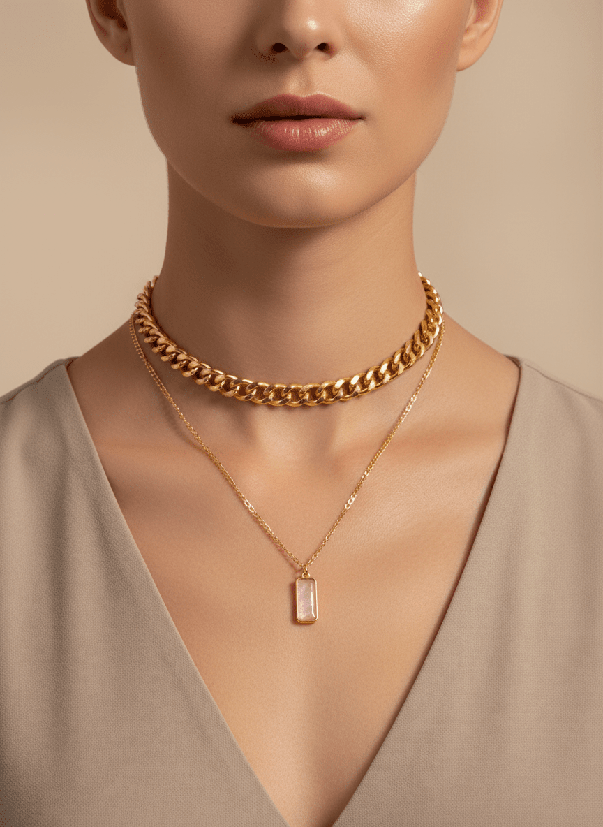 Double-Layer Mother-of-Pearl Pendant Necklace – Modern Rectangular Design