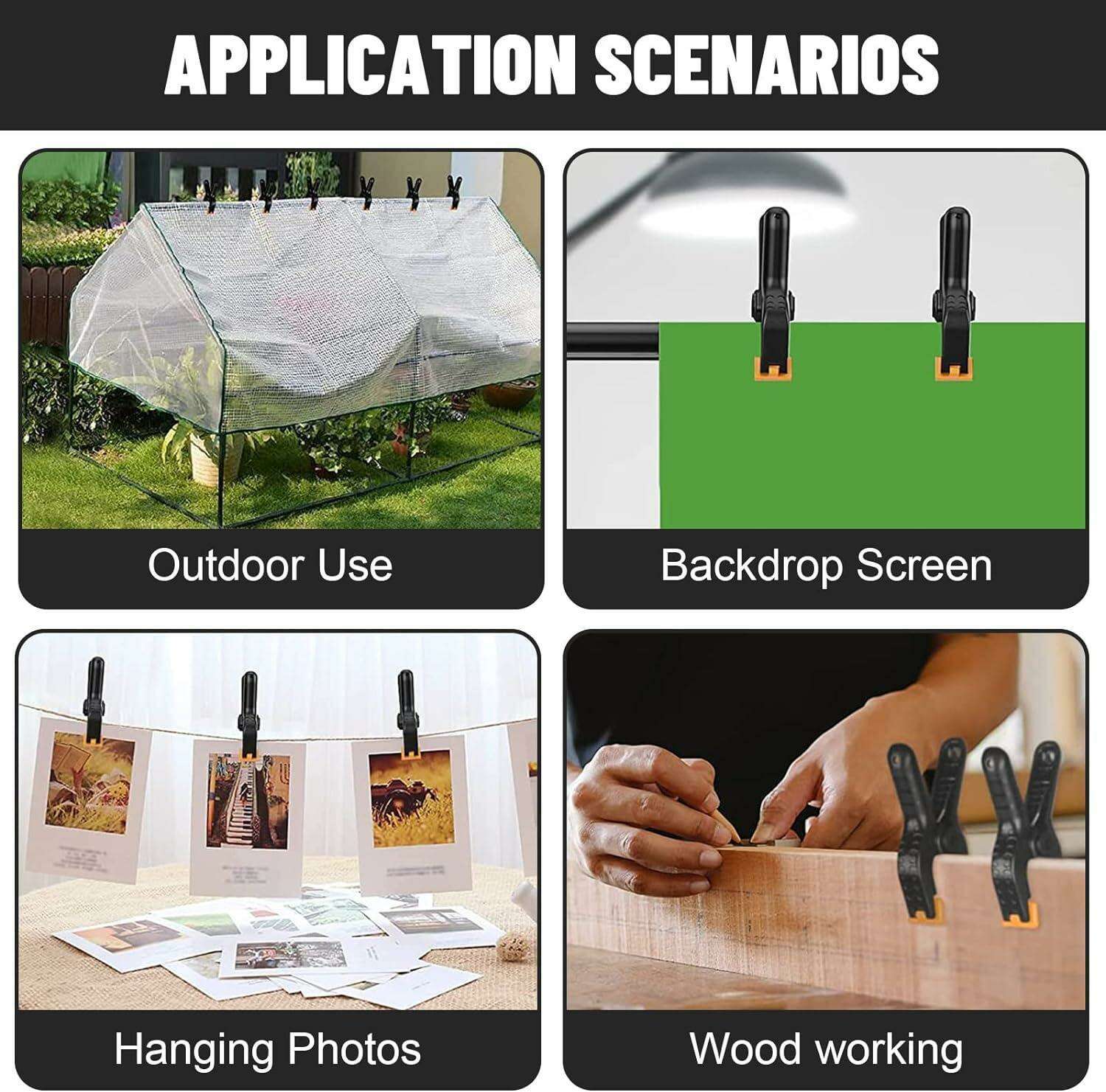 Each set includes 6 plastic spring clips, measuring 110 * 155mm (4.3 * 6.1 inches), with a maximum opening mouth of 35mm (1.37 inches). Compact and portable, these clamps facilitate easy storage and transport, making them an essential addition to your toolkit.