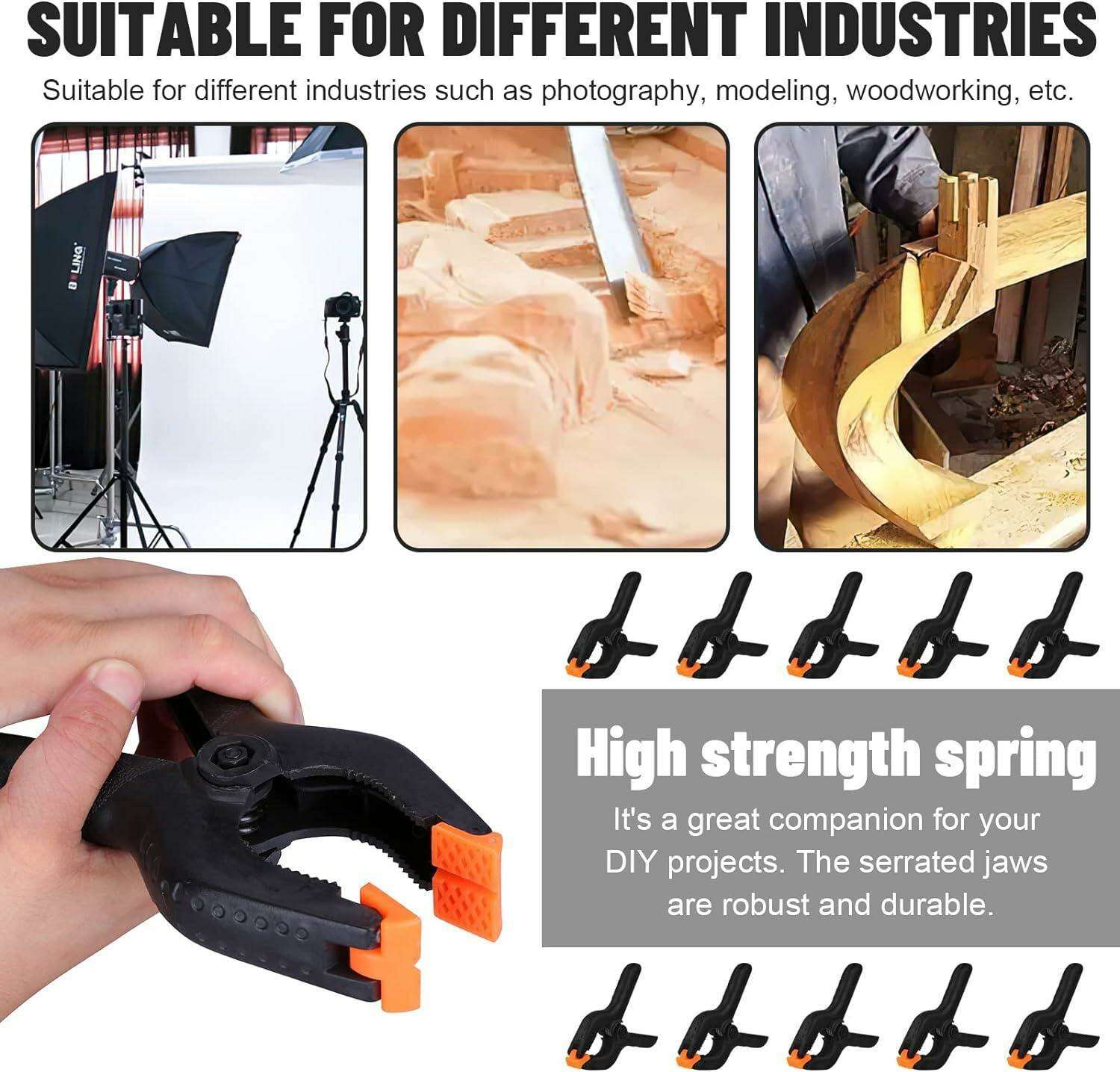 Transform your woodworking and DIY projects with our Heavy-Duty 6-Piece Spring Clamp Set. This set is designed for both professionals and hobbyists, providing reliable clamping power for a variety of applications.