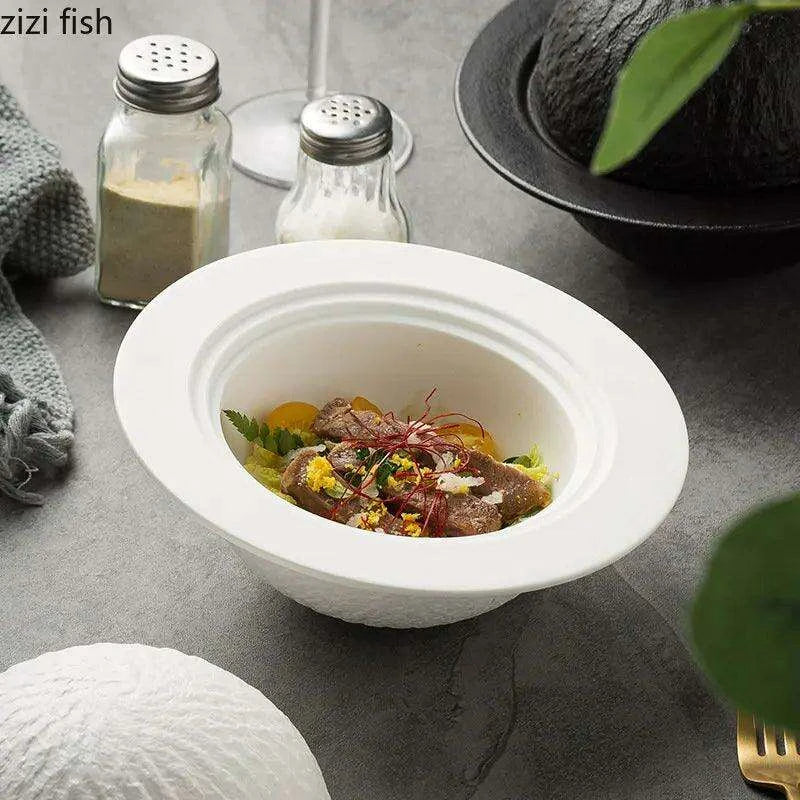 Elegant Artisan Ceramic Bowl Set with Lid and Rock Texture for Gourmet Dining