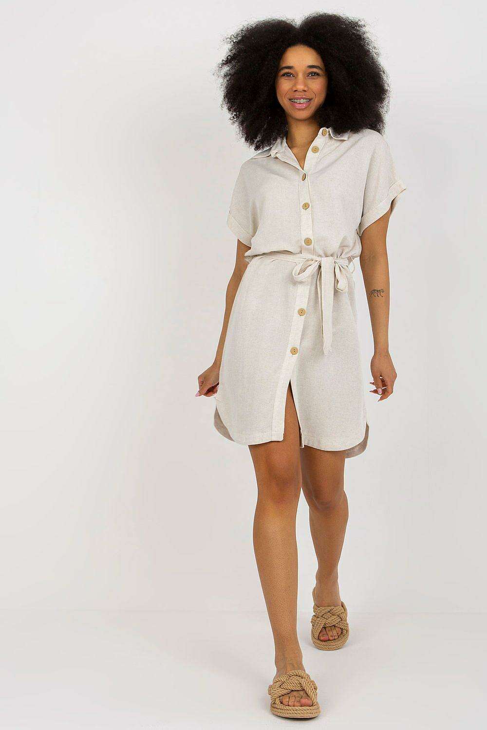 Chic Linen Midi Dress with Belt and Collar