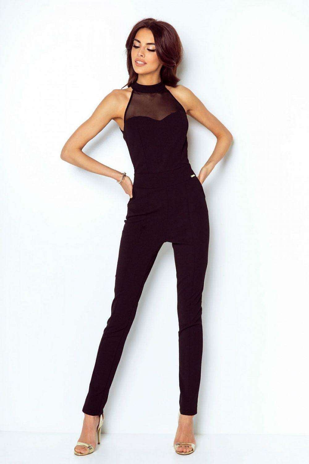 Elevate your evening attire with a sleek black jumpsuit designed to turn heads and feel effortless. The standout feature is a heart-shaped neckline that elegantly frames your neck and décolletage, adding a touch of romance to a modern silhouette.