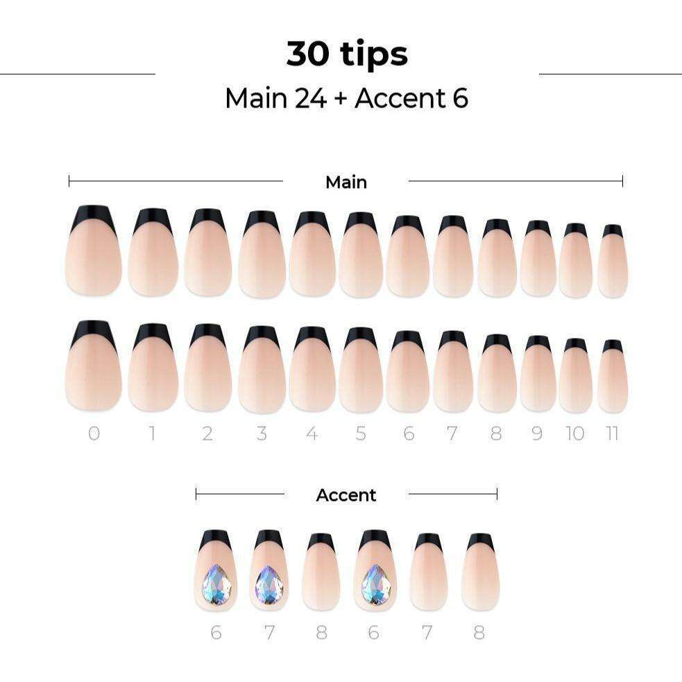 - 30 Gel Nail Tips: Each tip is beautifully designed in the exclusive #Black Paradise style, ensuring a stunning finish.