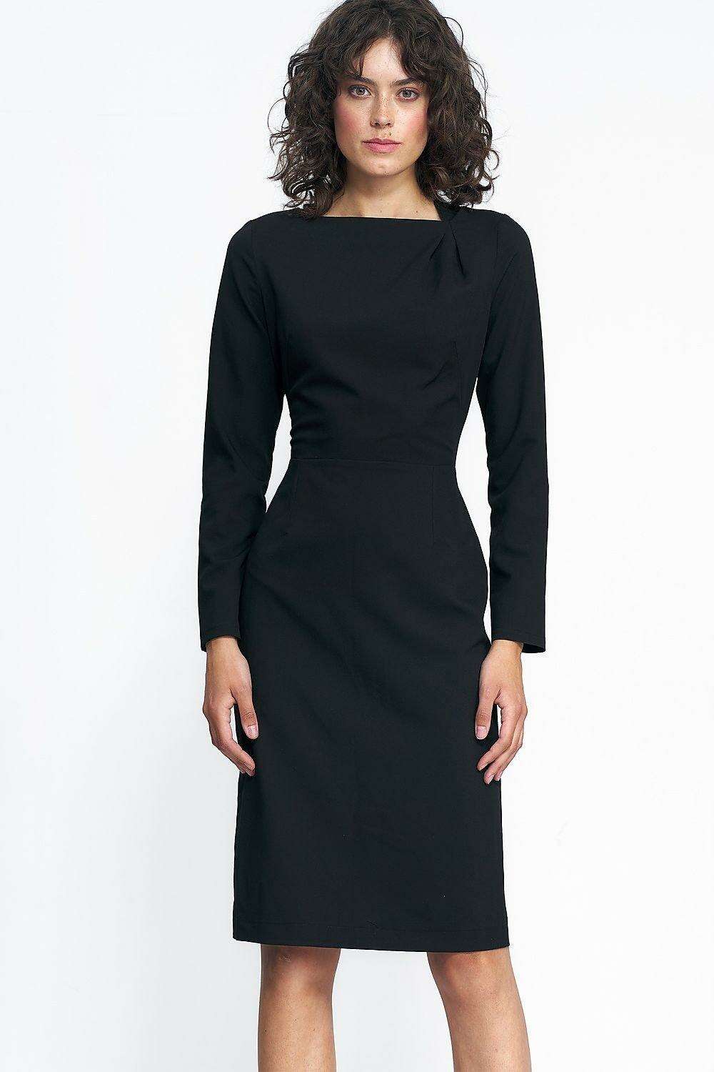 Elegant Black Pleated Day Dress For Women Comfort Fit