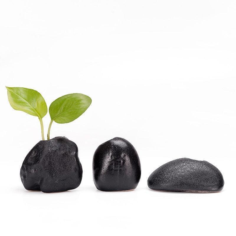 Elegant Black Stone Miniature Vase: Customizable Nature-Inspired Home Accent