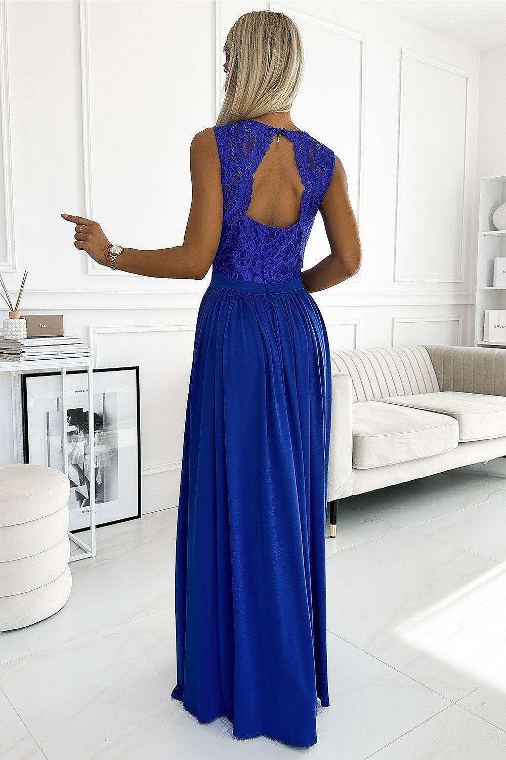 Choose the Chic Blue Lace Floor-Length Dress for your next elegant event and experience the blend of style, comfort, and timeless beauty that sets this dress apart from the competition.