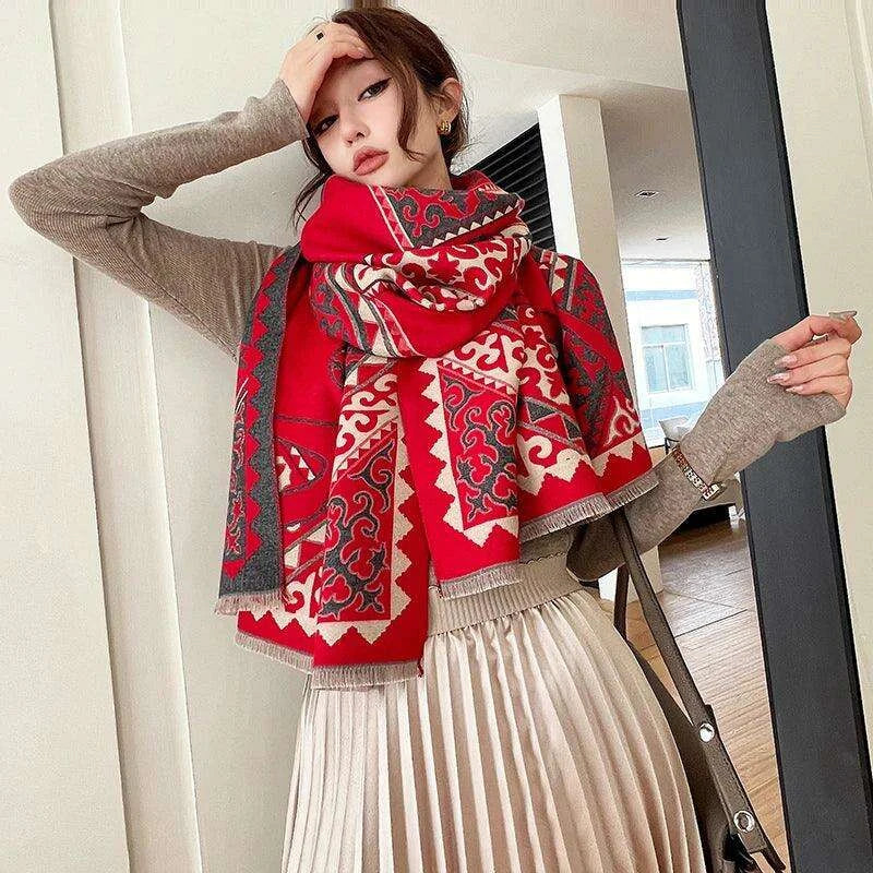 Elegant Cashmere-Blend Winter Shawl & Scarf with Unique Design