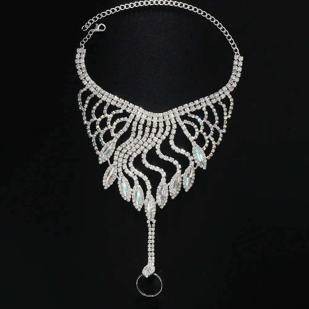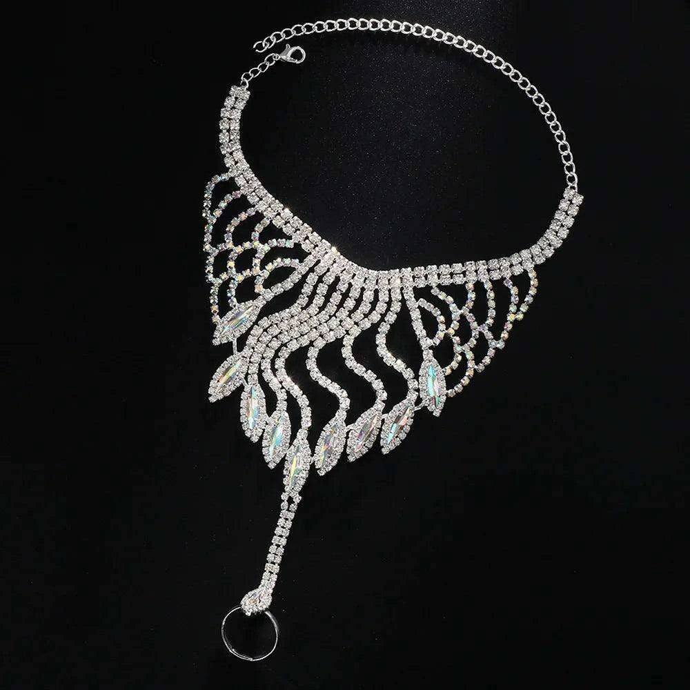 Elevate your accessory game with the Elegant Crystal Charm Wrap Bracelet and Finger Chain - Bridal Radiance. This stunning piece is designed to enhance your natural beauty while infusing a dash of sophistication into any outfit. Perfect for brides and trendsetters alike, it seamlessly merges timeless elegance with modern charm.