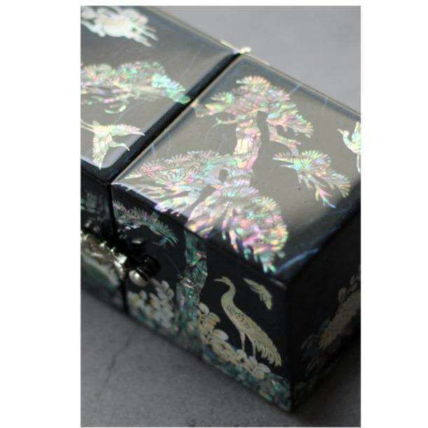 Experience the perfect blend of tradition and modernity with the Majestic Twin Cranes Najeon Jewelry Box. This captivating piece is more than just a storage solution; it embodies the essence of Korean culture and artistry, making it an essential addition to your home or a cherished gift for a loved one.