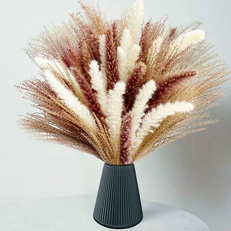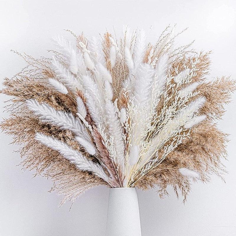 - Natural Dried Flowers: Artfully handpicked to highlight the harmonious blend of Small Pampas Flowers, Reed Grass, Rabbit Grass, and Ears of Wheat.